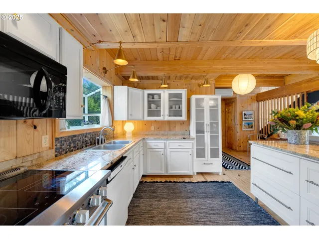 Lakefront Home with Expansive Views on Bradley Lake. Discover the ultimate blend of coastal luxury in this lakefront lodge-style home in prestigious Bradley Lake Estates. Nestled on a south-facing tranquil cul-de-sac and protected lake cove, the home offers breathtaking lake views and effortless access to lake activities, woodland walks and located just a half a mile from the ocean. Step inside and experience a perfect blend of rustic elegance and modern amenities. The artisanal home features timeless craftsmanship with soaring wood-beamed ceilings, solid wood finishes, a striking, floor-to-ceiling fireplace while south-facing windows and multiple skylights bathe the interiors in natural light. The open-concept layout ensures seamless flow, making daily living and entertaining easy for both a couple or an expanded family of guests. The chef’s kitchen features granite countertops, updated custom cabinetry, a Viking induction stove, and an island, while new appliances in the adjacent walk-in pantry and laundry room eases entertaining and daily living convenience. Thoughtful use of space adds to the home’s versatility where both communal and private areas support both work and leisure. Three spacious ensuite bedrooms, each possess stunning lake views, comfortable sitting and sleeping areas, and privacy to enjoy a deep connection to nature. The primary suite features French doors to the deck, his-and-her closets, and a skylit retreat-like ambiance. The upstairs loft suite provides one of the best views of the lake with a closet/nook for tucking-in additional guests. A lower-level private suite with a separate entrance, covered patio, cedar closets, and an updated bath offers flexibility for rental guest or multi-generational living. A full-length deck and protected porches allow for seamless indoor-outdoor living. Schedule your private tour today.