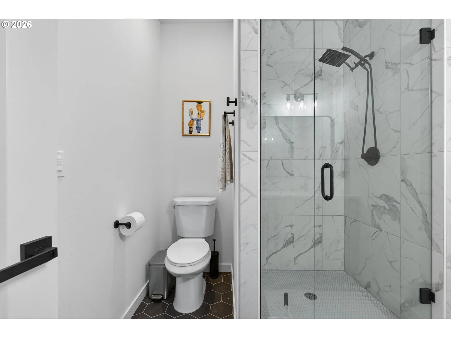Move-in ready, this inviting condo in SW Portland offers modern conveniences and welcomes you with a light-filled main level and an open-concept layout. The kitchen features new stainless steel appliances, quartz countertops, custom cabinetry, and beautiful tile work. The primary suite is conveniently located on the main floor and includes a stunning walk-in shower. New custom blinds have been added in both the living room and primary bedroom. Upstairs offers a spacious layout with two sizable bedrooms, a beautifully finished full bath, and a large walk-in laundry room. The backyard has been thoughtfully updated with new pavers, a grassy area for play, and a brand-new AC unit. Barely lived in since it was built, this home has been meticulously maintained and thoughtfully designed throughout. Ideally located near downtown and all that SW Portland has to offer, with easy commuting access and close proximity to Marshall Park and Tryon Creek.