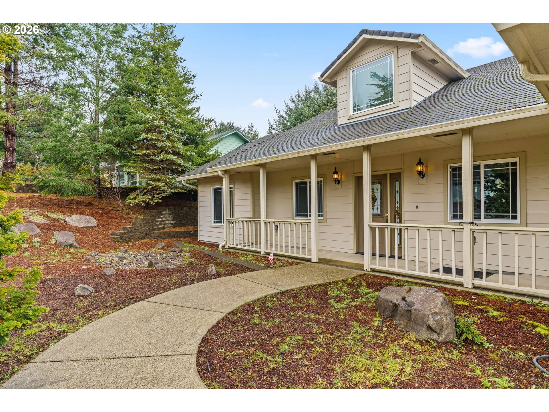 This is it! A one-level home in Oregon’s iconic coastal town of Florence that truly has it all: Move-in ready condition including appliances, quiet cul-de-sac placement surrounded by well-maintained properties (no HOA!), and lovely curb appeal with fresh landscaping. Outside, enjoy a fully fenced backyard bathed in full sun for gardening, relaxing, or entertaining. The irrigated front and back lawns make for easy maintenance & well kept curb appeal. Generously sized covered entryways at both the front and rear provide year-round functionality. Step inside to find high ceilings, a central vacuum system setup, recirculating hot water system for instant warmth, and efficient forced air heating and cooling. The kitchen features custom cabinetry for style and function. A spacious primary suite is thoughtfully located in a separate wing of the home, offering privacy and comfort with a large walk-in closet and double sinks in the ensuite bathroom. Oversized two-car garage completes the home’s list of desirable storage spaces and conveniences. Located just minutes from the dining, shopping, and charm of historic Old Town Florence, and a short, easy commute to several of Oregon’s most beloved coastal landmarks: the sand dunes, various lake & tide pool state parks, Heceta Head Lighthouse, and the Sea Lion Caves. One hour west of the Eugene regional airport, this is a true contender for your forever home, or a restful vacation residence!