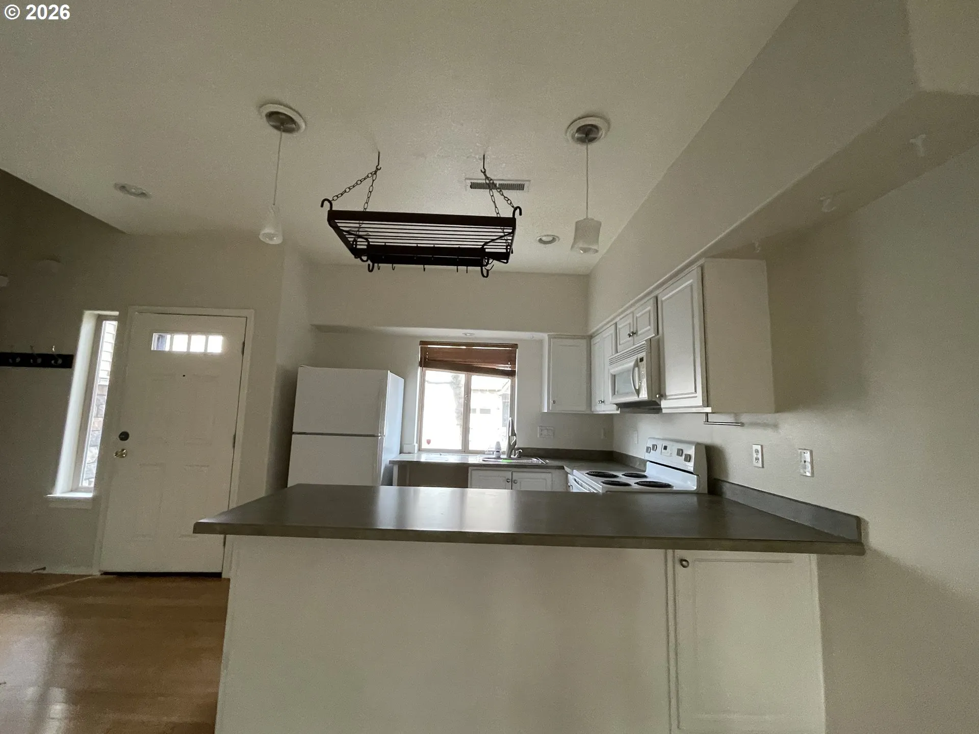 End unit townhouse approximately one block from Glendoveer golf course, nature trails, and minutes to public transportation. Open floor plan on the main with breakfast bar, office, and half bath. Three bedrooms upstairs. Nice sized yard with Catio and room for a garden. No HOA fees!
