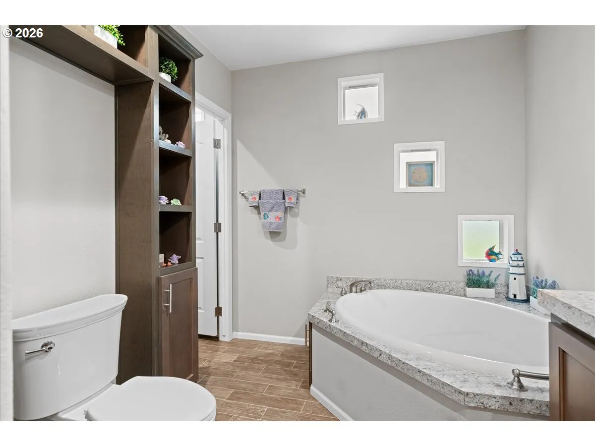 WOW! This beauty is only 5 years new! Impeccably cared for and loaded with upgrades, you’ll appreciate all the details from the ‘Alaska insulation package’ giving superior efficiency, extra tall windows for natural light casting, solid wood jointed cabinets/drawers, oversized island, 3 walk-in closets, solar up-lights on the deck rail and even motion sensor lit outlets! TWO carports, freshly poured walkways, front porch, fenced yard that backs to greenway & over 36k in upgrades and exterior extras!