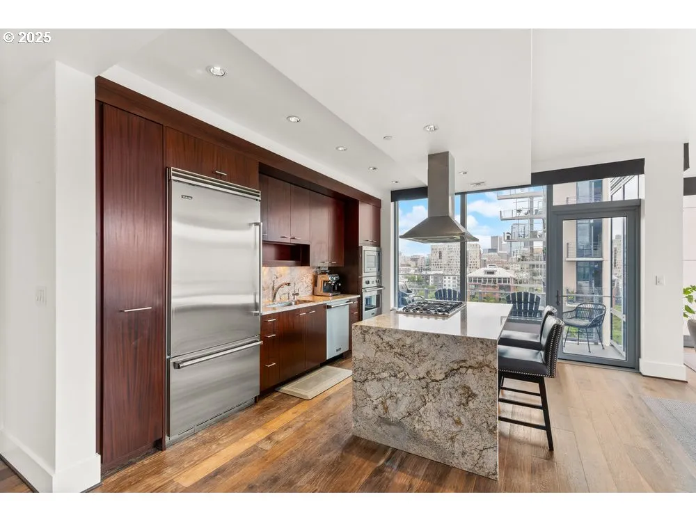 Immaculate, light-filled, and beautifully upgraded—this southwest corner residence at The Metropolitan offers luxury Pearl District living at its finest. Thoughtfully redesigned with custom enhancements throughout, this 2-bedroom, 2-bath home captures sweeping city and West Hills views through expansive walls of windows, bathing the interior in natural light.The open-concept living area features custom wood flooring and designer wall treatments, paired with integrated built-ins and a seamlessly mounted TV for a refined, cohesive aesthetic. Custom cabinetry with integrated lighting elevates both ambiance and functionality, while separate blackout shades throughout the home provide comfort and privacy at the touch of a button.The chef-inspired kitchen boasts a full suite of brand-new Viking appliances, making everyday cooking and entertaining effortless. Storage is exceptional, with California Closets throughout—including a beautifully organized primary suite wardrobe. The primary bath offers a spa-like retreat featuring a luxurious Jacuzzi tub, perfect for unwinding at the end of the day.Two secure garage parking spaces add ease and convenience to urban living.As one of the Pearl District’s premier luxury buildings, The Metropolitan delivers unmatched amenities: full-time concierge service, a state-of-the-art fitness center, wine storage, conference room, library/community lounge, and guest suites for visitors.Set in the heart of the Pearl—a neighborhood celebrated for its art galleries, acclaimed restaurants, boutique shopping, parks, and effortless walkability—this residence represents a rare opportunity to experience elevated living within one of Portland’s most coveted addresses.