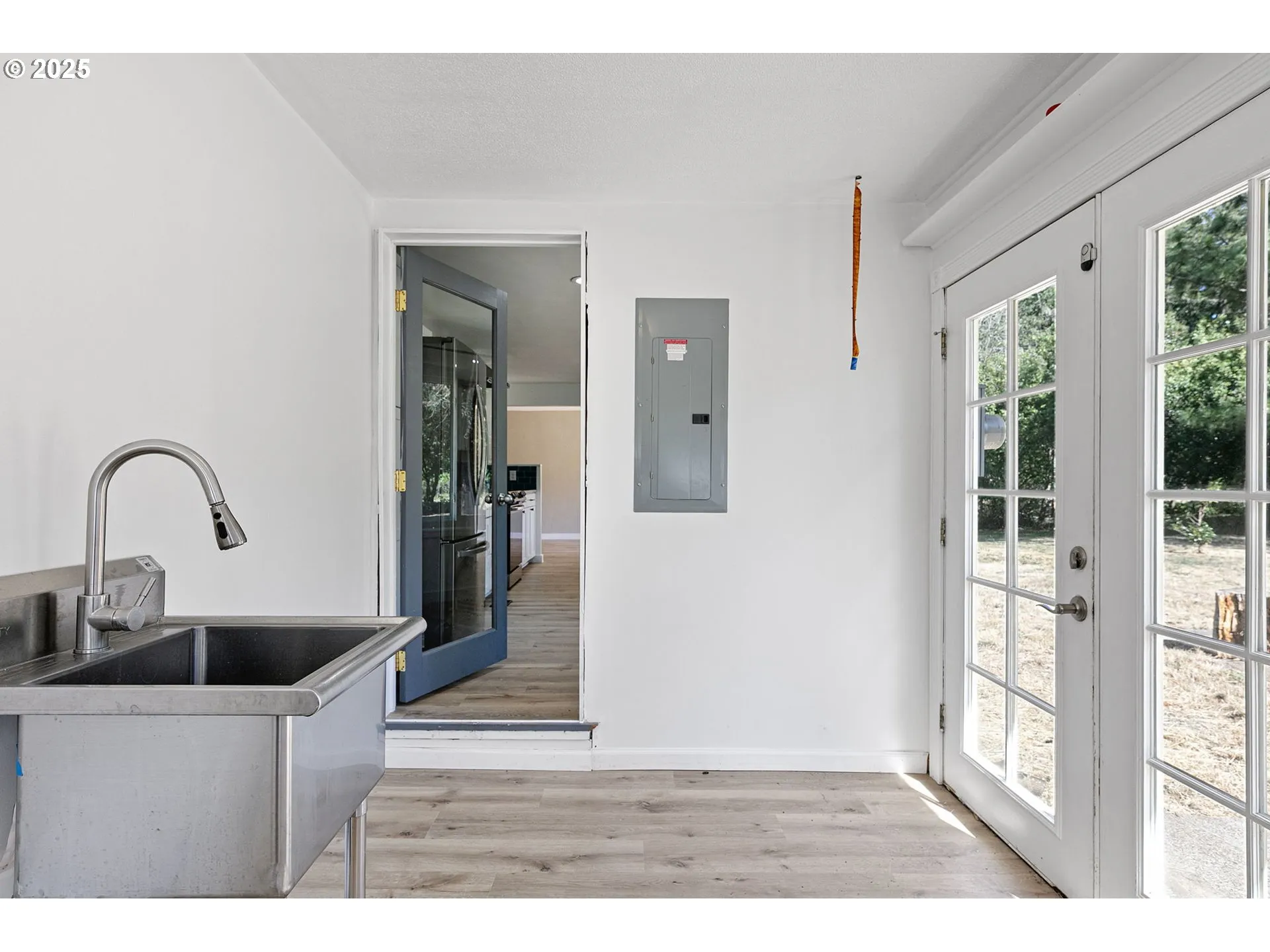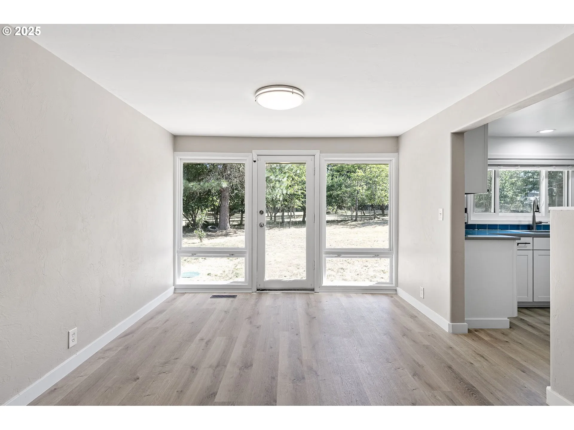 Back on market, no fault to home! Here is your chance to purchase this beautifully updated country retreat on a fully fenced and peaceful 2.48-acre lot. A brand-new front deck welcomes you to this charming 3-bedroom, 1-bath home, offering 1,880 sq ft of thoughtfully designed living space. Fresh paint, brand-new flooring, and new baseboards throughout create a bright and clean aesthetic from the moment you enter. The spacious living room has a cozy fireplace & opens seamlessly into the fully updated kitchen. Quartz countertops, sleek white cabinetry, stainless steel appliances, a deep stainless sink, and a bold blue tile backsplash create a modern yet warm space, rounded out with a pantry next to the refrigerator and views of the surrounding trees. Down the hall, you’ll find three comfortable bedrooms, each with ceiling fans and ample natural light streaming through vinyl windows. The bathroom features custom tile work, updated fixtures, and a stylish round mirror above a ceramic-tiled vanity. A large utility room includes a utility sink, space for laundry, and plenty of storage. The dining room features picturesque windows and access to your backyard. Step outside to enjoy everything this unique property has to offer. The acreage features a diverse orchard with apple, pear, plum, cherry, and fig trees. This land is perfect for gardening, harvesting, or simply enjoying the changing seasons. There is ample space for RV, boat, or vehicle parking, and a fire pit in the backyard makes for cozy gatherings under the stars. The partially converted garage is already plumbed for a bathroom, offering future potential or simply convert the space back in to a garage. The property is sub-dividable. Additional upgrades include a newer 1,000-gallon septic tank, newer well pump, updated plumbing, newer gutters & new roof. Solar panels help cut electrical costs to a minimum, and there is also a leased propane tank. Come view this turnkey property that is ready for its new owner!