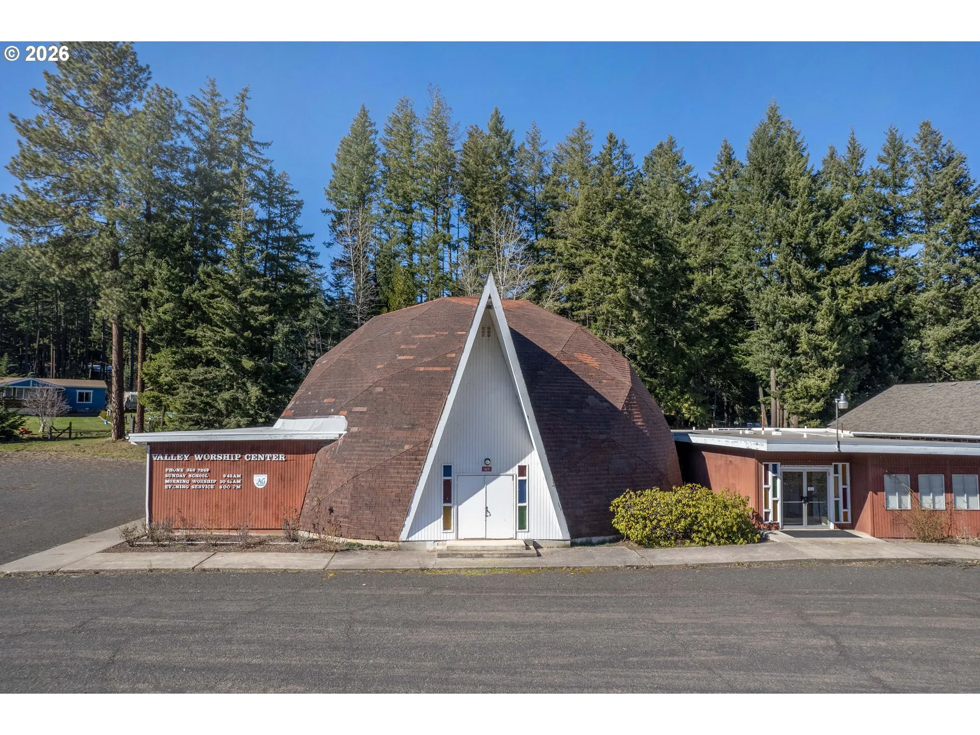 Hallelujah! This unique property includes two deeded parcels totaling over 2.5 acres. It features a distinctive dome church and a charming 3 bedroom 1 bath home. With partial modification or removal of a portion of the church structure, the second parcel may offer a potential build site. The property enjoys divine Mt. Hood views and a quaint creek meandering behind. Whether you’re looking for a residence with extra space, an investment opportunity or a creative redevelopment project, this property offers exciting possibilities. Buyers to perform due diligence regarding building and land use options.