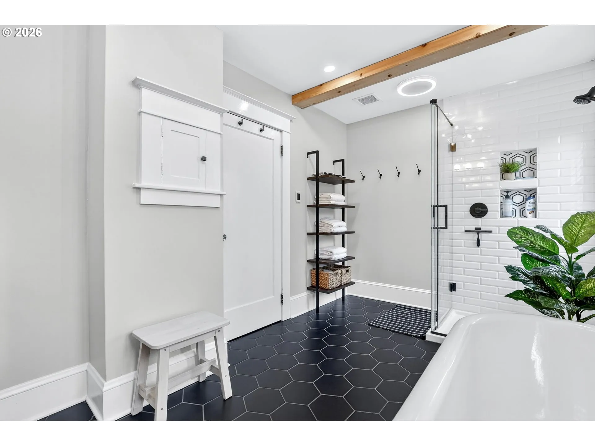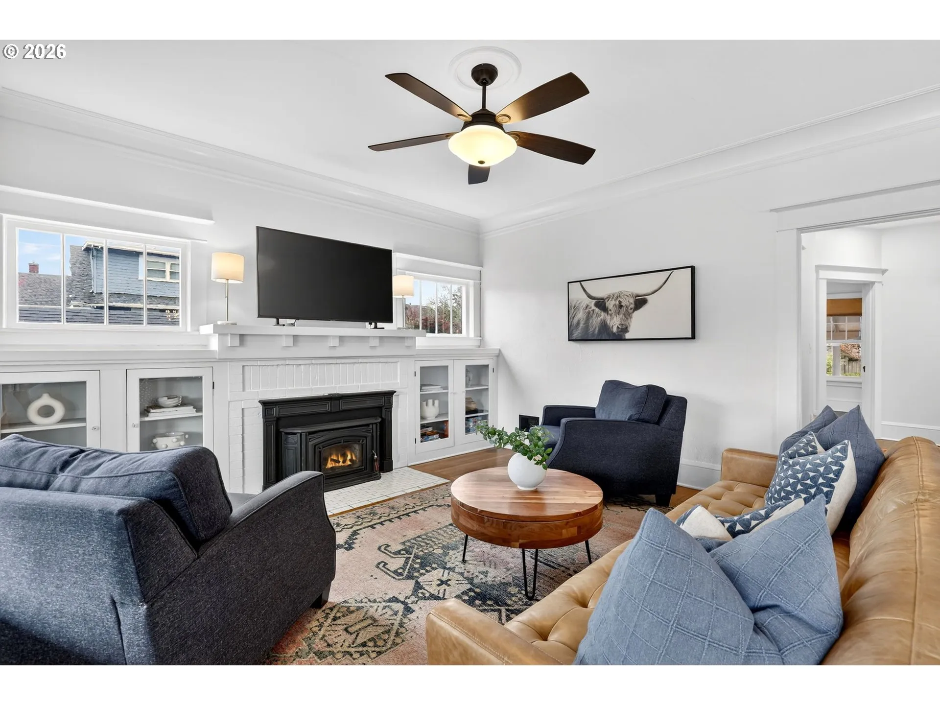 Step onto the welcoming front porch and immediately feel the timeless charm of this rare historic bungalow in Oregon City. Lovingly maintained over the years, this home reflects a true pride of ownership that is felt from the moment you arrive. Inside, natural light fills the living and dining rooms where a cozy woodstove creates a warm and inviting gathering space, perfect for relaxing at the end of the day or hosting friends and family. The beautifully updated kitchen has been thoughtfully designed with rich hickory cabinets, a farmhouse sink, and quality finishes throughout. It is a space that blends the character of the home’s era with modern function. Also included on the main level is a comfortable bedroom and an office that is ideal for working from home, hobbies, or a quiet retreat. Upstairs you will find three additional bedrooms with walk-in closets and an impressive bathroom featuring a walk-in shower, soaking tub, and heated floors. The dry basement provides excellent storage and flexibility. Outside, the property continues to impress with a detached garage and its own electric meter that is well suited for projects or a workshop. A carport and additional parking area offer plenty of space for guests. The fenced backyard and covered patio create a wonderful setting for summer evenings, outdoor dining, and relaxed entertaining. Located in the heart of the McLoughlin Historic District, this home is just a short stroll to the library, coffee shops, restaurants, and local shops in downtown Oregon City. A truly special home where history, comfort, and lifestyle come together. Come see it in person and fall in love.