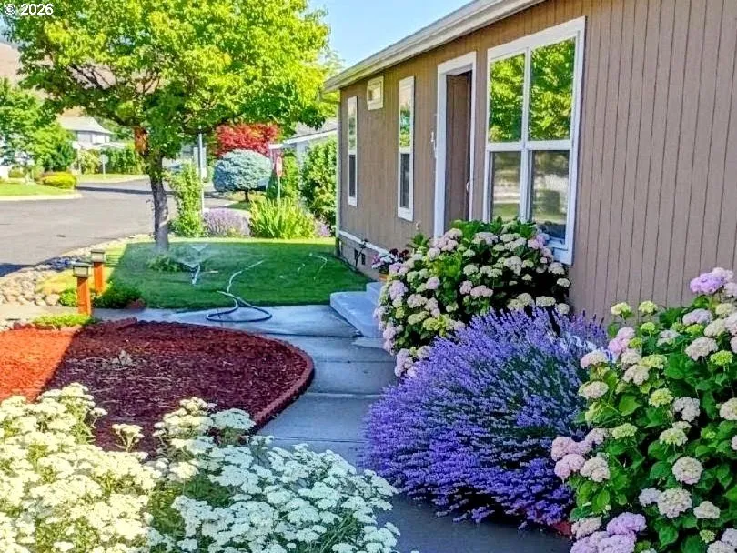Quiet and comfortable living in the desirable Pomona Meadows 55+ community. A pleasing floor plan that separates the living room and primary suite from a family room, additional bedrooms, and 2nd bathroom. The kitchen has solid-surface countertops, stainless steel appliances, raised cabinets, a pantry, and opens to a bright dining area. Enjoy the covered patio and bubbling water feature in the private fenced backyard. An attached 2-car garage, a 10 x 10 utility shed, and several raised garden beds in the colorful landscaped yard. This home has been very well maintained and has many thoughtful updates. The HOA dues cover water, sewer, garbage, and road maintenance.