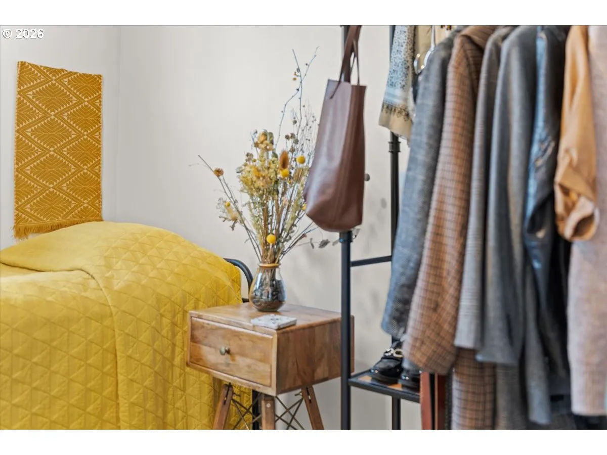 Modern style meets a great SE location—NO condo, NO HOA. This home features clean modern architecture, neutral tones, and an open-concept layout that feels bright and inviting. The primary bedroom includes an ensuite bath with tub/shower, plus a second full bath for guests and the second bedroom. Upstairs laundry makes life easy, with washer and dryer included. The kitchen has sleek tile, floating shelves, and SS fridge included. Air conditioning keeps things comfortable year-round. Just enough backyard space to make it your own! Steps from Mt. Scott Community Park and around the corner from Woodstock, with plenty of shopping, dining, and everyday conveniences nearby. Truly move in ready, schedule your private showing today! [Home Energy Score = 9. HES Report at https://rpt.greenbuildingregistry.com/hes/OR10244137]