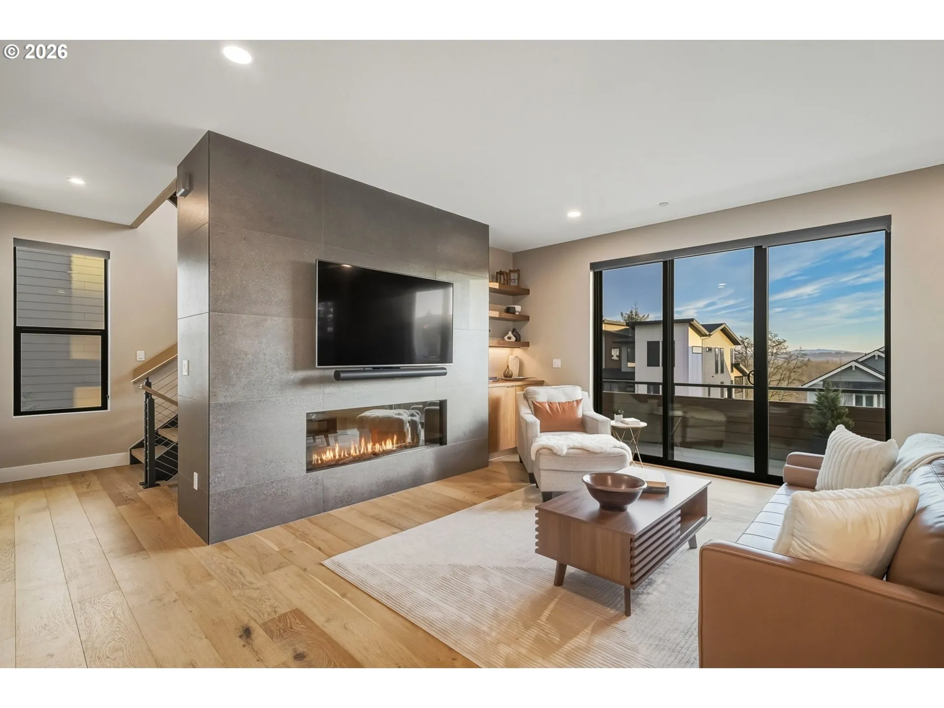 ** Open House Sunday 3/8 from 1pm-4pm ** Enjoy sweeping views of the Columbia River and sparkling city lights from this exceptional home, completed in late 2023 and located just minutes from downtown Camas. Thoughtfully designed with luxury, flexibility, and comfort in mind, this immaculate 5-bedroom residence is filled with abundant natural light. A ground floor guest suite with its own dedicated private entrance offers versatility for guests, work from home needs, or as a separate residence. Inside, high end finishes and custom built-ins elevate every room. Gorgeous French White Oak hardwood floors extend throughout the main level, and sunlight pours into the open living area, drawing attention to the chef’s kitchen with its expansive waterfall quartz island with prep sink, built in refrigerator and freezer, induction cooktop, Bosch dishwasher, and beautiful walnut cabinets. A stylish linear fireplace in the main living area adds warmth and ambiance. Luxurious touches include heated floors in all bathrooms and throughout the ground floor. The separate guest suite offers complete independence with its own kitchenette, sitting area, bedroom, large en-suite bathroom, and dedicated washer/dryer. A main level bedroom adds valuable flexibility and functions beautifully as a home office. Upstairs, secondary bedrooms share a bathroom, and a spacious bonus room offers panoramic river views along with two closets—part of the home’s thoughtful emphasis on well-designed storage throughout. The primary suite delivers on every detail, blending comfort, style, and smart design. The backyard features a partially covered Trex deck for year-round enjoyment and a large hot tub. The oversized garage includes an epoxy floor, space for a gym or workshop, a separate mechanical room, and a Tesla Wall EV charger. This spotless home includes all appliances and is truly move-in ready. Don’t miss this unique opportunity!