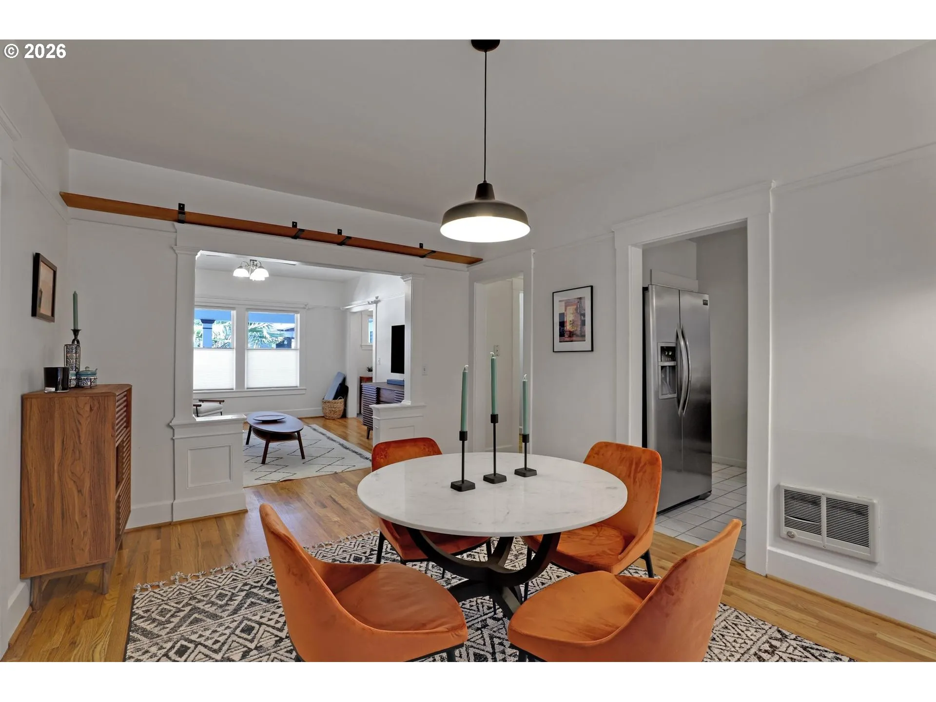 Tucked away on the quiet top floor of a historic 1907 building, this beautifully curated flat offers a peaceful retreat in one of Portland’s most beloved neighborhoods. Located just steps from NW 23rd Avenue, Washington Park, and the trails of Forest Park, it’s perfectly placed for both city living and outdoor adventure. Inside, mid-century-modern design meets everyday comfort – a hand-painted foyer ceiling by Spanish artists welcomes you in, where a spacious living room flows into a separate dining area, with a cozy reading nook. Philips Hue smart lighting enhances the ambiance, while keyless entry, secure bike parking, free on-premise laundry, and rare off-street parking make it the perfect blend of a building with classic charm and modern convenience. The unit is available fully furnished for buyers who want to move right in! Blackout blinds and a comfortable bed ensure restful sleep, and the refinished clawfoot tub with excellent water pressure turns every shower into a spa-like experience. The building, with its colonial charm and lush garden atrium, is a hidden gem (rumored to have appeared in Drugstore Cowboy). And the location couldn’t be better: grab coffee at Sterling Coffee, a croissant at Ken’s Artisan Bakery, or explore boutique shops, yoga studios, and award-winning restaurants nearby. Easy access to transit and bike routes makes getting around a breeze. This thoughtfully designed space is ready to become your home in one of Portland’s most beloved neighborhoods.