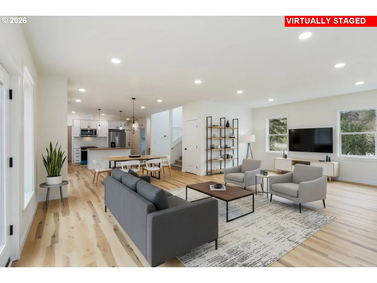 Welcome to this newly completed home in Glide, perfectly situated on a peaceful 1-acre lot and nestled among mature trees that provide privacy and a serene natural setting. A charming front porch welcomes you to the front door and into the home’s bright, open-concept living space.Inside, the main living area features a beautiful white kitchen with a large island and eating bar, stainless steel appliances, and plenty of workspace for cooking and gathering. The dining area includes a sliding door that opens to expansive decking, creating the perfect indoor-outdoor connection for entertaining or enjoying the surrounding scenery. The living room offers soaring ceilings, abundant natural light, and additional access to the deck.The functional laundry room includes built-ins, a utility sink, and convenient exterior access.Upstairs, retreat to the spa-like primary suite featuring vaulted ceilings, a soaking tub, walk-in shower, double-sink vanity, and a spacious walk-in closet. Two guest bedrooms share access to a private hidden bonus room, offering a great flex space ideal for a playroom, office, media room, or extra storage.Surrounded by nature with room to breathe, this property offers the best of comfortable living in a beautiful Glide setting.