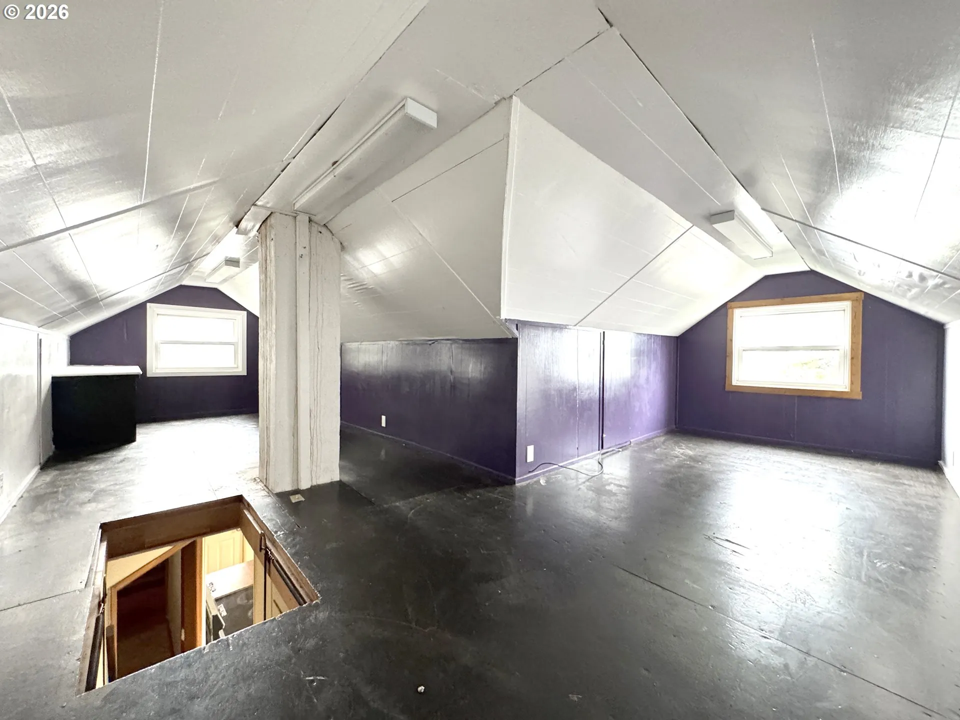 Fixer Opportunity. Set on high ground with views of the Youngs River, this character rich cottage feels as though it was pulled from the pages of a storybook. Original solid wood floors in the living room, original wood interior doors, arched doorways, and a cozy wood-burning stove create a warm, timeless atmosphere that immediately feels inviting and familiar. Tucked just off the beaten path, the property offers privacy, space to spread out, and true river frontage with the property extending across the highway to Youngs River.The home features two bedrooms, an attached unfinished sunroom, and a full unfinished basement with laundry hookups and ample room for storage or a workshop. Pull down stairs provide access to the finished attic is a nice bonus and ideal for a studio, office, or creative hideaway. Outside, a deck overlooks the river and surrounding landscape, framed by a mature laurel hedge that enhances the feeling of seclusion. A two-space carport and detached steel arched garage provide covered parking and utility space, while generous flat areas allow room for a boat, RV, or recreational gear. Bordered by land owned by the North Coast Land Conservancy on one side and the Oregon State Board of Forestry on the other.Home is being sold as is where is. Seller will not complete repairs as part of this sale.
