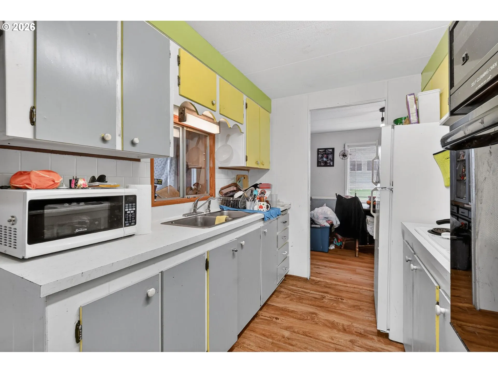 Bright and inviting, this 3-bedroom, 1-bath manufactured home offers comfortable living with laminate flooring throughout and abundant natural light from a generous number of windows. The living room features a cozy wood stove, perfect for chilly evenings, while the dining room includes charming built-in features that add both character and functionality. The closed kitchen is equipped with a built-in oven, making meal prep easy and efficient.Step outside to a spacious backyard, ideal for gardening, outdoor entertaining, or simply enjoying the fresh air. Located in a desirable area, this home offers the perfect blend of country tranquility and convenient access to local amenities, including nearby schools, parks, shopping, and community attractions. A fantastic opportunity to own a well-maintained home with practical features and a bright, open feel.
