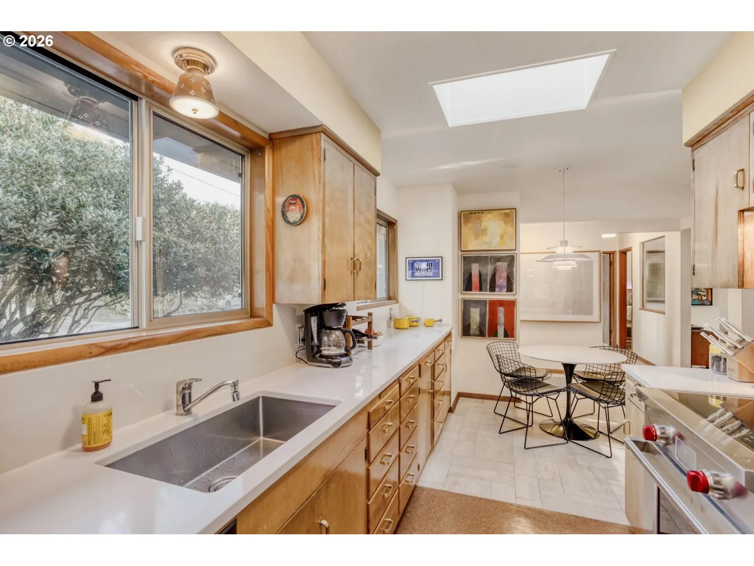 A must-see opportunity in coveted Hillsdale. This 3-bedroom, 2-bath mid-century daylight ranch offers a rare sense of privacy and calm — your own sanctuary in the city. As only the second owner in 70 years, this home has been thoughtfully preserved and tastefully updated, blending original character with modern comfort. Highlights include George Nelson and Louis Poulsen lighting, oak hardwood and travertine floors, Roman brick fireplaces (both with rebuilt fireboxes), an original vintage wet bar, and a well-appointed kitchen featuring quartz countertops, Wolf induction range, and Asko dishwasher. Major system updates were completed in 2019, including the roof, sewer line, and plumbing. Additional intentional improvements include an HVAC system with a Trane heat pump and Thermo-Pride biodiesel furnace for colder days, double-paned aluminum-framed windows that maintain the home’s original aesthetic, and foam-injected insulation throughout. Surrounded by Douglas-Fir and Cedars, the property borders a lush greenbelt teeming with wildlife, and will qualify for Platinum status with the Certified Backyard Habitat program. The outdoor space is truly special, with a spacious patio ideal for entertaining or relaxing, plus a truly unique “secret” deck built around trees. A rare blend of character, comfort, and quiet in desirable SW Portland, this is an extraordinary place to call home. Seller is a licensed real estate broker in Oregon. [Home Energy Score = 3. HES Report at https://rpt.greenbuildingregistry.com/hes/OR10038278]