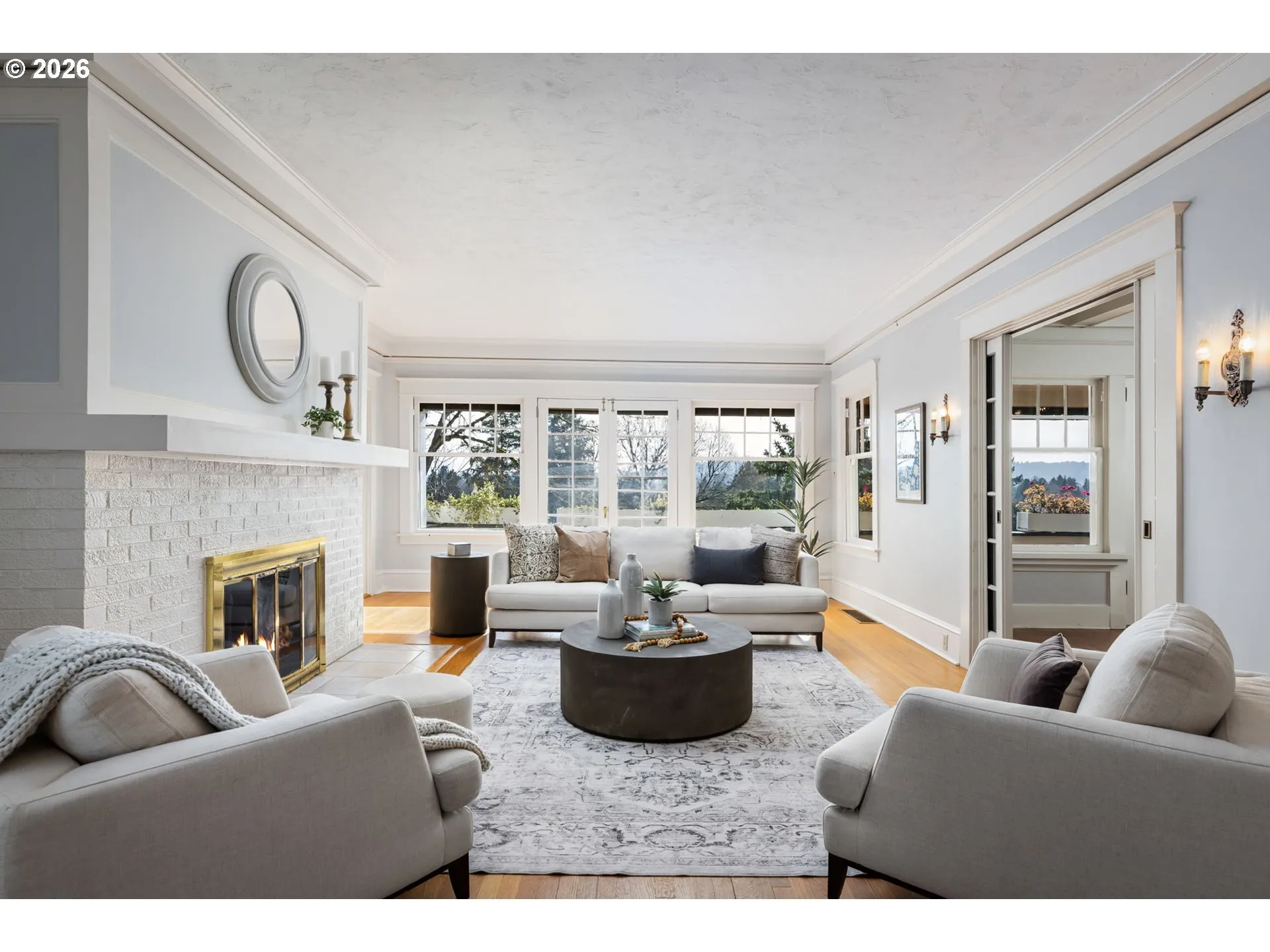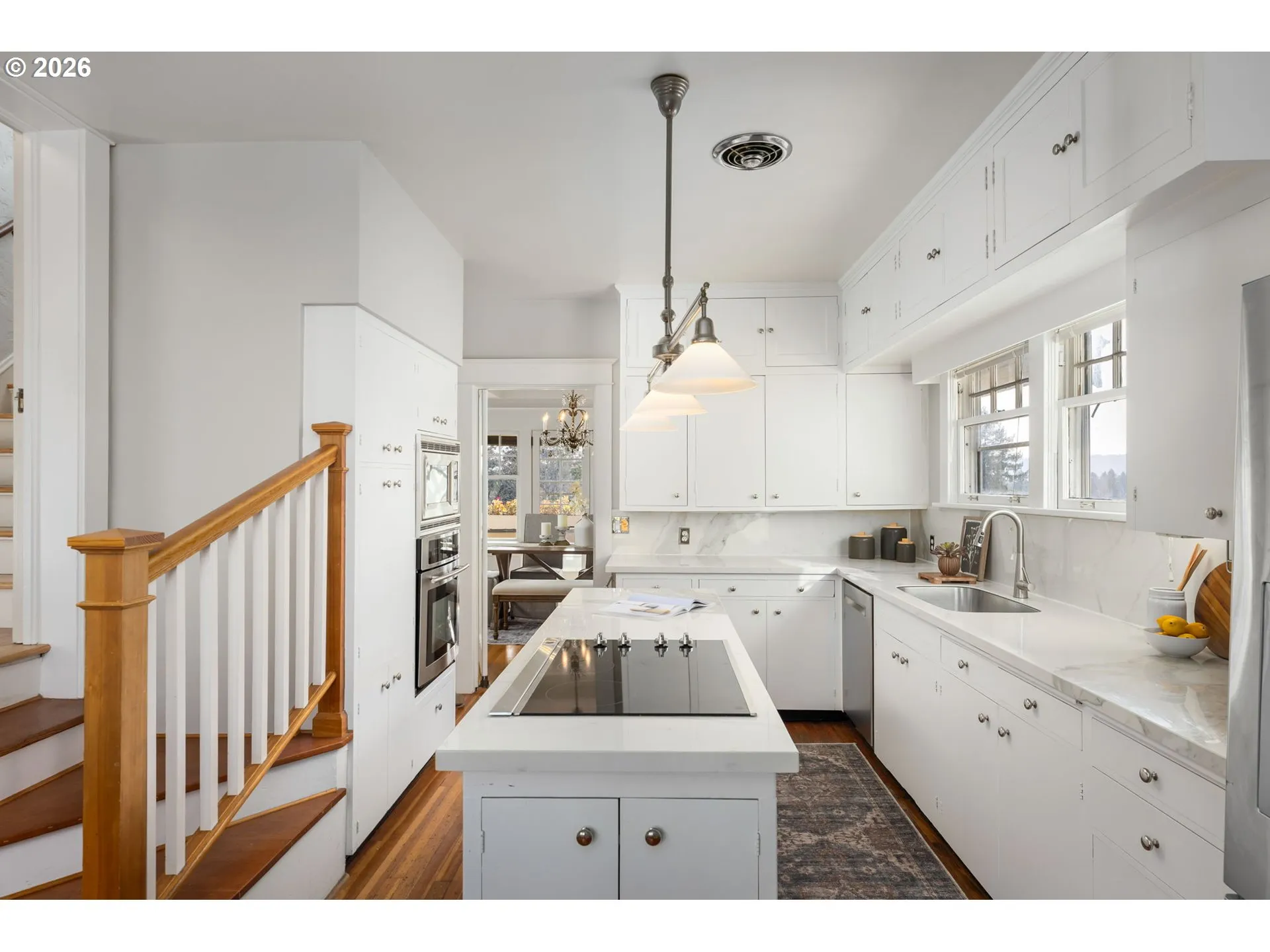 Originally built in 1911, this timeless Craftsman home is perched on the coveted Alameda Ridge, offering sweeping views of the Irvington neighborhood and Portland’s iconic skyline. This stately vintage gem, designed for Northern Pacific Railway superintendent Mr. Fowler, exudes character and history, with its original oak hardwood floors, handsome woodwork, and grandly proportioned rooms.The main level features a Primary Suite, complete with a private study—perfect for work or relaxation. Upstairs, you’ll discover five spacious bedrooms, one of which boasts its own fireplace for an extra touch of charm. The lower level offers fantastic versatility, with a 2-bedroom apartment/guest suite and additional unfinished space ready for storage or future living area expansion.Outside, two full-length decks invite you to soak in the breathtaking views, stretching across Irvington and the city skyline. Modern updates include a newer furnace, AC, roof, and a decommissioned oil tank—ensuring comfort and peace of mind.A delightful nod to the home’s history, carved pineapple symbols are woven throughout the design, both inside and out. These pineapples, a traditional Craftsman motif, stand as enduring symbols of hospitality, warmth, and friendship—perfectly complementing the inviting character of this extraordinary residence.This is more than just a home—it’s a piece of Portland’s history, waiting to be cherished. [Home Energy Score = 1. HES Report at https://rpt.greenbuildingregistry.com/hes/OR10245267]