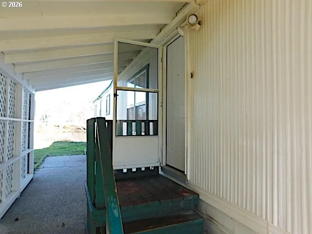 Located in Elk Meadows Cooperative 55 or older park. This home has Alder Creek frontage and views. Space rent for this property is $429 which includes water/sewer & garbage. New Forced Air Heat Pump furnace system in this home. Vinyl windows and rubberized roof have been installed. Step-up open kitchen with eating area. Nicely kept wood paneling throughout. Utility in second bedroom; Covered entry with storage; Parking area in the front of this home. All potential buyers must be Park approved by both the Cooperative Management and Pending Approval of membership to finalize purchase. Seller to contribute towards buyers repairs or closing costs at a full price offer.