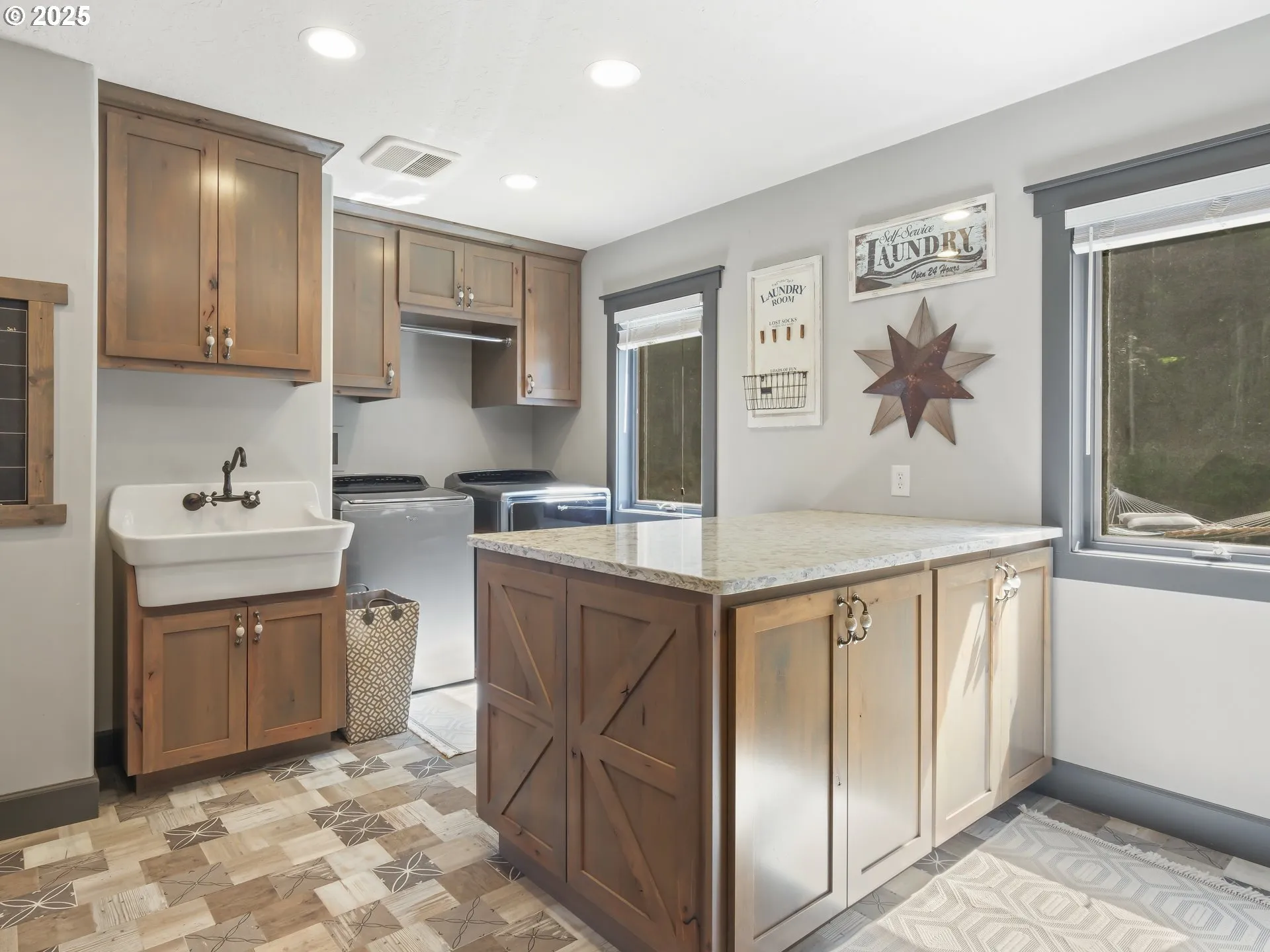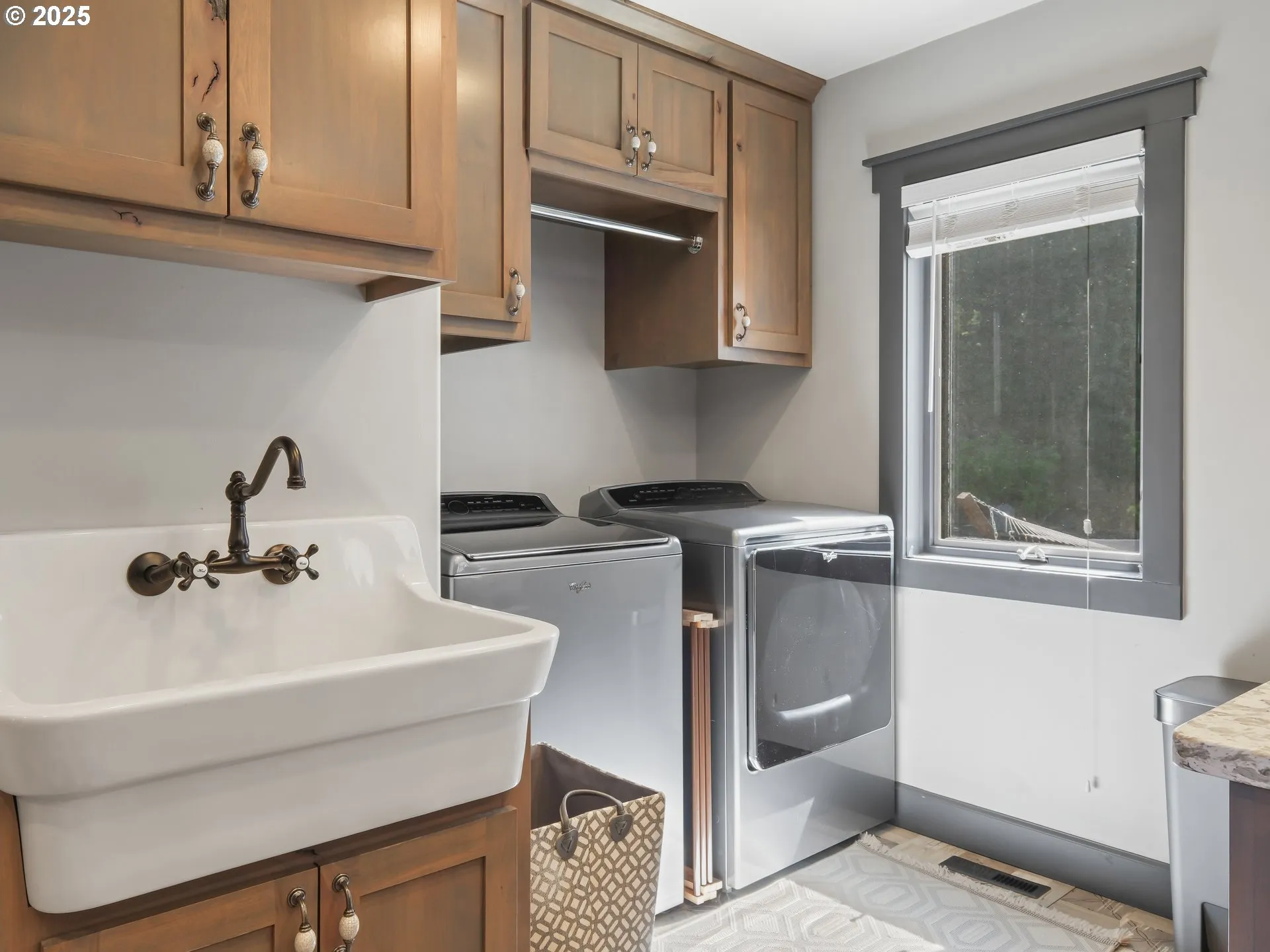 Offered at a new price. Beautifully maintained 4,349 sq ft home set on 5.73 private acres across two separate tax lots. The main tax lot includes approximately 4.3 acres surrounding the home, while the second tax lot consists of approximately 1.43 acres, separated by an auxiliary gravel road and offering cleared areas suitable for a future shop or additional structures. Built in 1992, this home offers solid construction and classic Northwest character with a spacious, flexible layout ideal for entertaining, working from home, or multigenerational living. Inside, enjoy an open floor plan with high ceilings, large windows, multiple living areas, four bedrooms, and three and a half bathrooms, plus two wood-burning fireplaces. The kitchen features granite countertops, tile flooring, stainless-steel appliances, including refrigerator, double convection oven, dishwasher, disposal, free-standing range, built-in ice maker, and a large granite island. The expansive primary suite includes large windows, a walk-out patio with hot tub access, and a spa-like bath with soaking tub, walk-in shower, double vanities, and generous closet space. The fully finished lower level offers a full bathroom, partial kitchen, king-size Murphy bed, and abundant storage, ideal for guests or extended living. Additional features include double-pane windows, garage door opener, laundry space with washer and dryer, built-in cupboards and shelving, and a built-in granite desktop for office or hobby use. Outside, approximately 2 acres of manicured landscaping include sprinkler irrigation, water feature, fire pit, hot tub, pond views, and a an Ipe hardwood deck. The property is fully fenced, including a private security gate up front, RV parking, long driveway, and three-car attached garage. Additional highlights include central AC, forced-air gas heat, public water, public sewer, gas hot water, and an original concrete roof that has been professionally cleaned and resealed. Schedule your showing today!