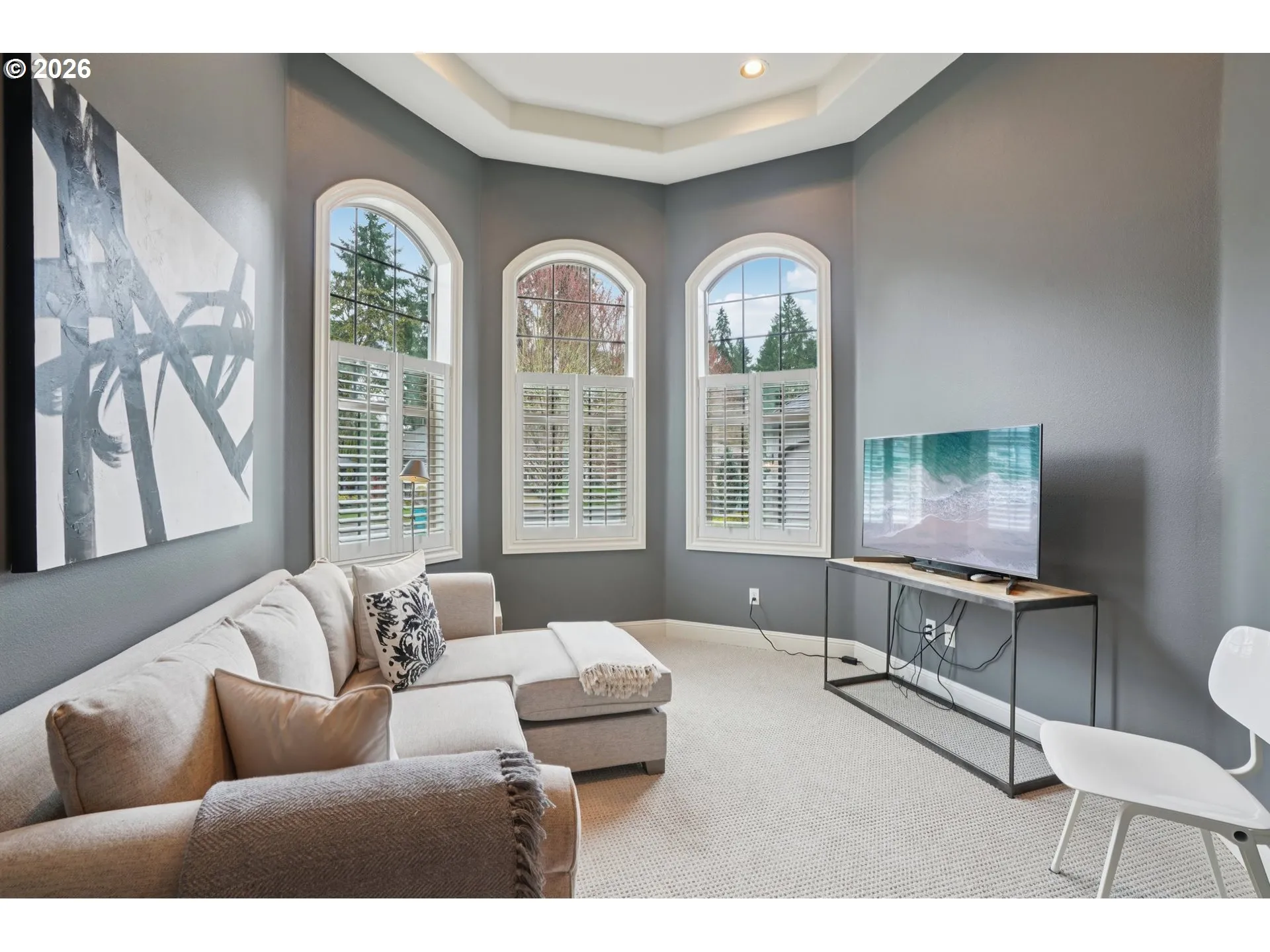 A stunning residence with elegance and sophistication, this exceptional single-story home in the desirable Canyon Ridge community showcases impressive architecture, unique design, and 12-foot ceilings. Rich travertine and hardwood flooring create a timeless foundation, while expansive windows invite natural light and frame the beautifully landscaped grounds. At the heart of the home, the kitchen features cabinetry extending to the ceiling, a built-in oven, a gas cooktop with custom hood, and butler’s pantry. You have a few options for the dining area location – currently off the kitchen and open to the living room, where a fireplace and custom built-ins create a warm focal point while offering views of the serene backyard. The primary suite is positioned on one side of the home. It features an accent wall, French door opening to the patio, and ensuite complete with a soaking tub, walk-in shower, and spacious layout. A charming sitting room or den with arched windows and French door entry offers the perfect space for a private office or reading lounge. On the opposite side of the home, three additional bedrooms provide generous accommodations. Two bedrooms share a Jack-and-Jill bath, and each offers its own walk-in closet. The home continues to impress with a well-designed laundry room featuring abundant storage, a utility sink, and convenient mudroom access from the garage. Oversized three-car garage at nearly 1,000 square feet! The backyard provides a peaceful setting with a water feature and multiple paver sitting areas. All of this is set within a highly desirable neighborhood and sought-after schools.