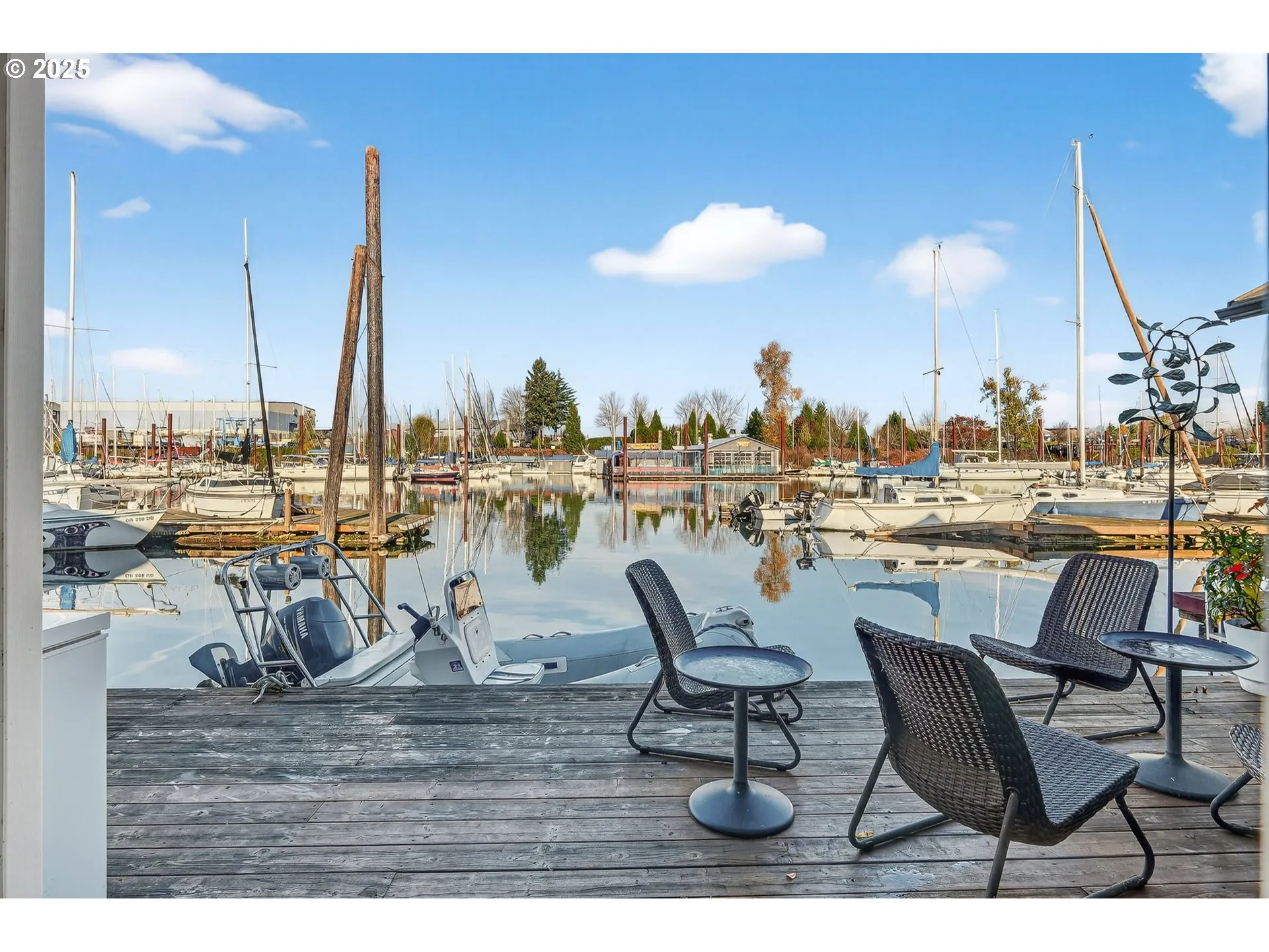 This bright and modern floating home is move-in ready and features a wall of windows and sliding glass door looking onto the water. It has an open plan living room and kitchen area with stainless steel gas appliances, including JENN-AIR range and dishwasher, slab counter tops, peninsula with eat-bar, and good storage. Cozy up to the gas stove in the wintertime and take in the view. In the warmer months, enjoy the roomy partially covered deck and all of the activity of floating house living on the river. There is even room to park your boat in front of the deck. The bathroom has double sinks and tile flooring, and there’s a laundry room with washer, dryer, and extra storage. This well maintained home is ideally situated on a part of the river where the floating traffic is entertaining, and it also happens to be a location where people almost always follow the no-wake zone rules. It’s immediately across from the Island Cafe, and just a short boat ride away are two other floating restaurants. So much to eat, see, and do!