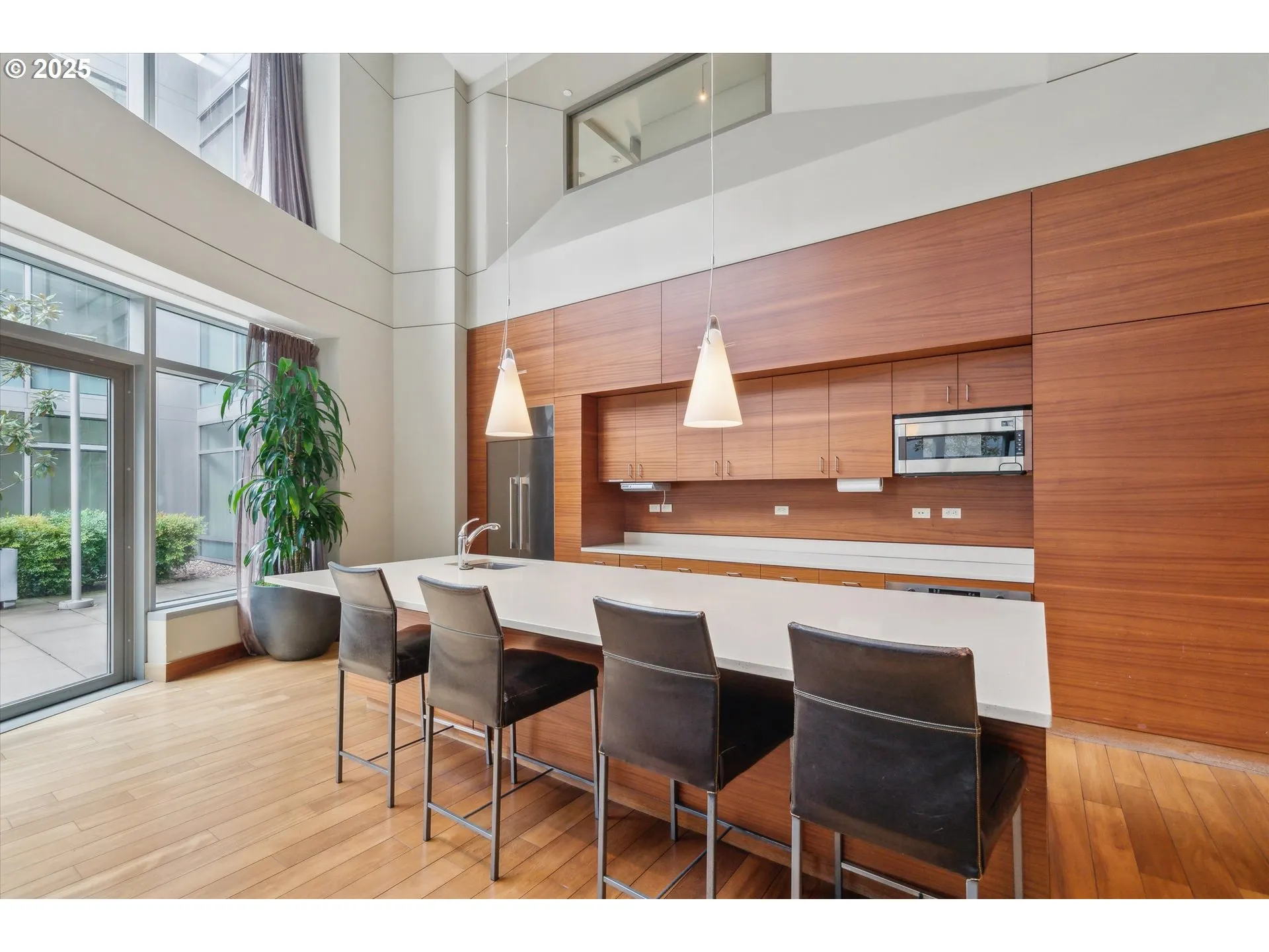 Perched on the 25th floor, this stunning 2-bedroom, 2-bath South Waterfront condo showcases sweeping views of the Willamette River, Mt. St. Helens, and the SW Hills. Inside, an open-concept layout creates a space that feels both refined and welcoming. The kitchen features stainless steel appliances, generous storage, and granite countertops. The living room is ideal for relaxing or entertaining, while the dining area is perfectly positioned to take in river views. The primary suite is generously proportioned, offering a large closet and an en-suite bathroom with a soaking tub and walk-in shower. The second bedroom/den functions beautifully as a home office or guest retreat, complete with a Murphy bed and convenient access to a full guest bath. Step out onto your private balcony to enjoy the views from above, or explore the building’s exceptional amenities, including concierge services, a community room, and beautifully maintained rooftop gardens. Secure parking includes two deeded spaces. Ideally located in the South Waterfront neighborhood, this condo is just steps from restaurants, shops, and more, with easy access to OHSU via the tram. Enjoy the tranquility of a morning stroll along the river and then hop onto the Streetcar and you’re connected to the best of Portland.
