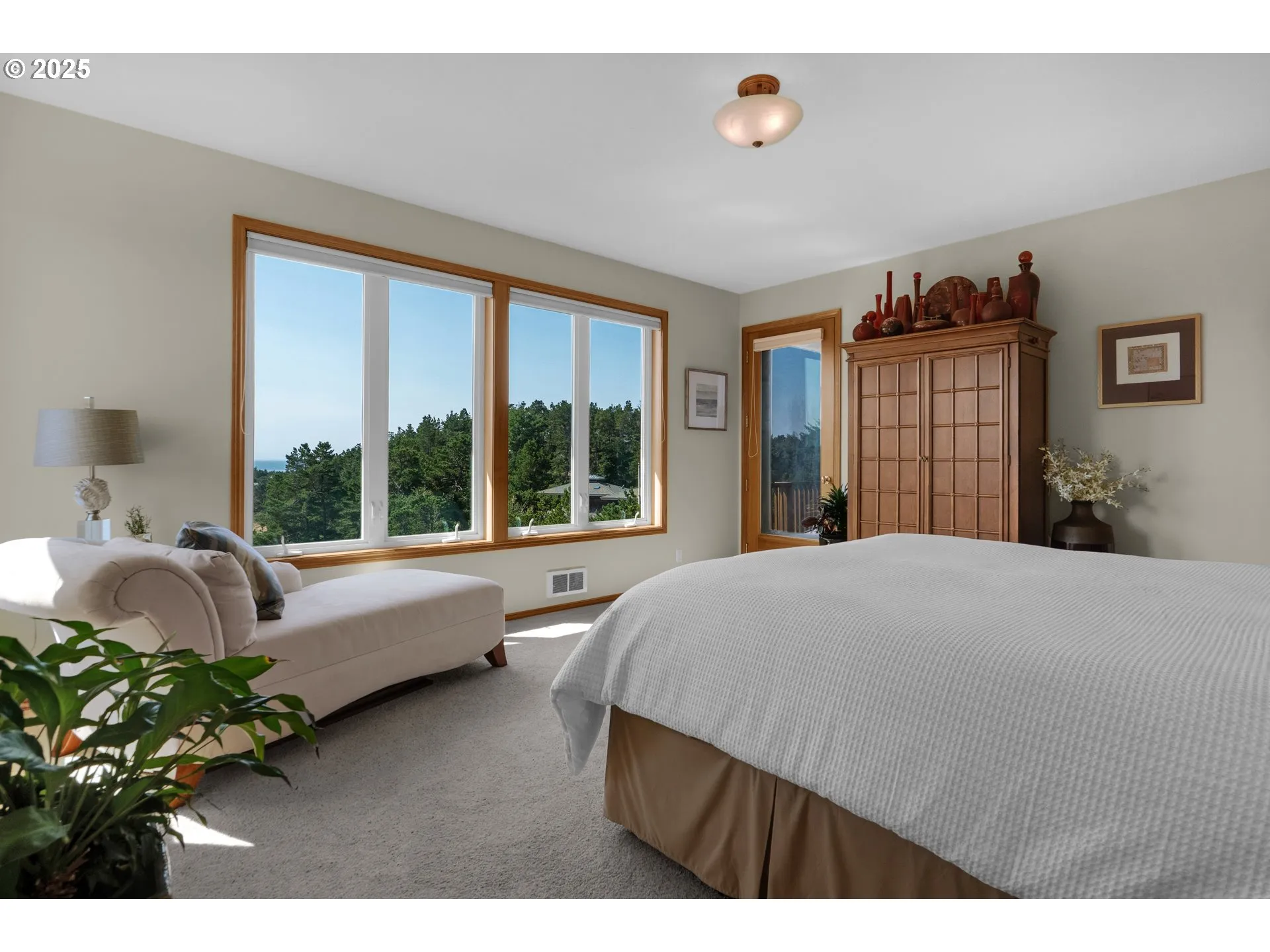 Panoramic views! Sited on a spacious, and oversized lot, this lovely home was custom built to capture the ocean, cove, mountain, & golf course views. One of a kind with views from virtually every room.Lot offers opportunity to partition. This stunning home boasts 3 bedrooms (including a generous Primary ensuite), 3 bathrooms, 2 living areas- one on each level. Spacious upper decks for ultimate outdoor living & amazing evening sunsets plus nighttime dark sky viewing of the stars. Features include a state of the art elevator which accomodates up to 950 lbs. Large, beautifully landscaped lot with serene and private patio.Easy access- via golf course paths- to the City Park & the Quaint Village of Manzanita. Attached garage. Highlights under documements. https://vimeo.com/111564317