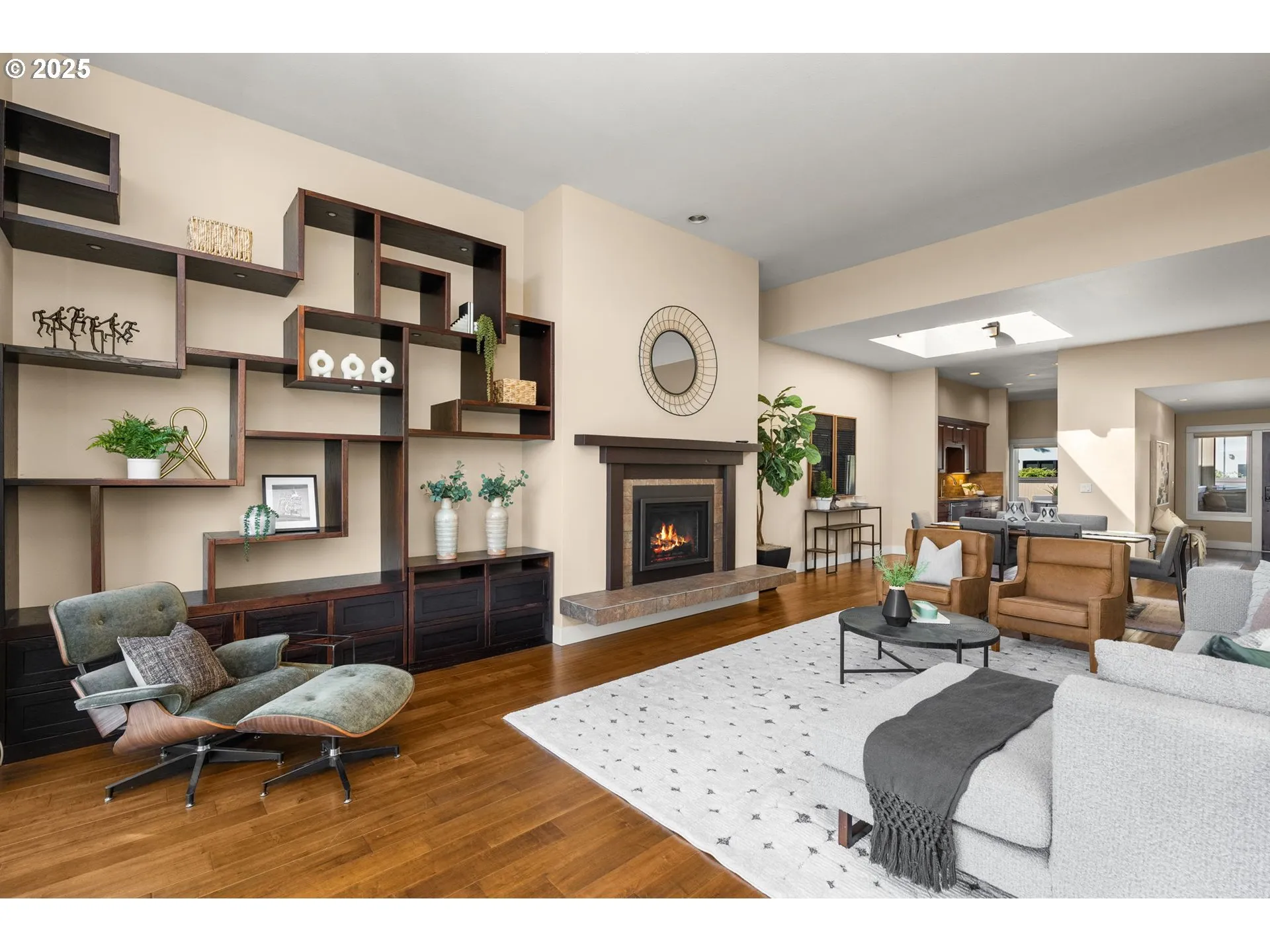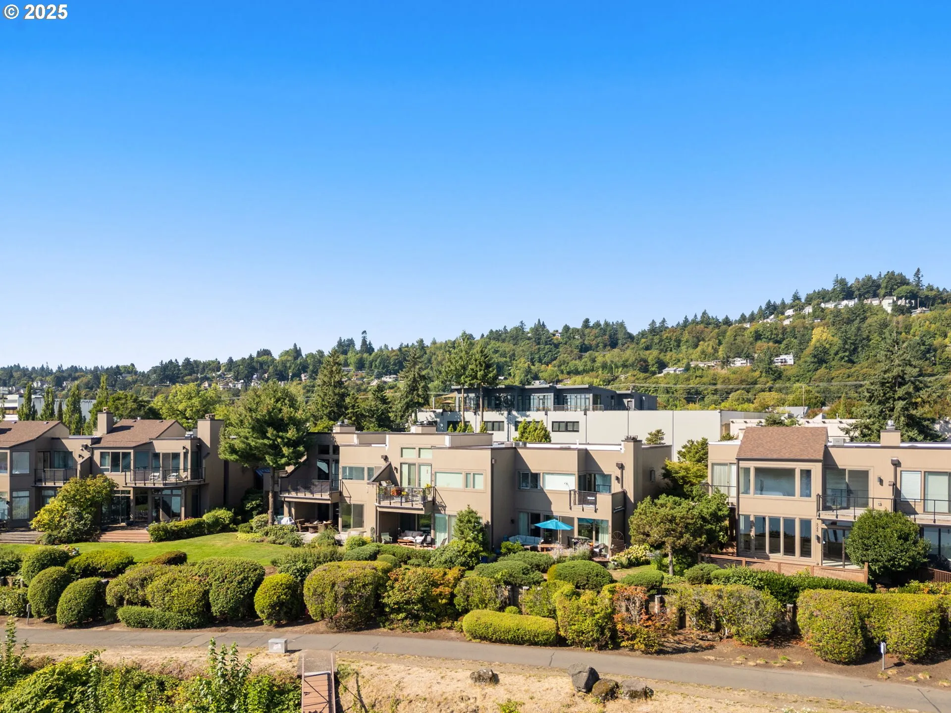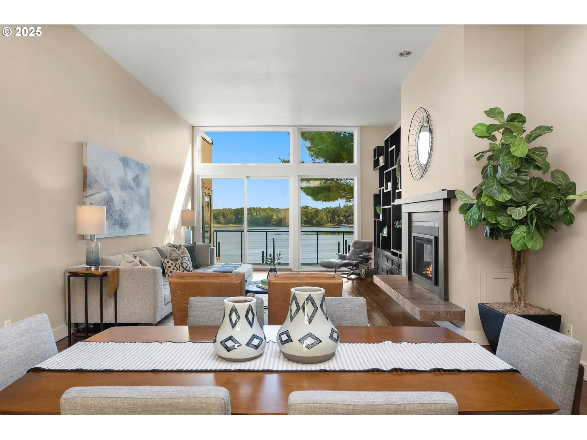 An incredible opportunity to live on the water! This luxurious single-level condo in Portland’s John’s Landing showcases sweeping views of the Willamette River, city skyline, and surrounding mountains. Floor-to-ceiling windows, soaring ceilings, skylights, and high-end finishes create a light-filled space that blends elegance with comfort. Inside, the living room centers around a cozy gas fireplace with doors opening directly to the private, east-facing deck—perfect for morning coffee or evening unwinding. The flowing layout connects the living room to the dining area and then to the kitchen, complete with a charming breakfast nook. With two bedrooms and two bathrooms, including a primary suite featuring panoramic river views and sliding doors to the deck, every corner of this home is designed for relaxation and style. Beyond your walls, the lifestyle is unmatched. Wander along nearby riverfront trails by foot or bike, explore the local shops and farmer’s market, or enjoy the convenience of being just minutes from downtown Portland. With two parking garages and generous storage for all your Pacific Northwest gear, this condo offers the perfect blend of luxury, convenience, and adventure. Accepted offer in November = no HOA fees for 6 months!