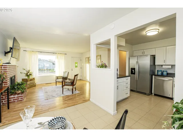 Charming one-level home in a quiet neighborhood, ideally located near shopping and schools. Thoughtfully updated in 2022, this home features beautifully refinished hardwood floors throughout and a fully remodeled kitchen with new cabinetry, quartz countertops, and stainless steel appliances. The bathroom was also refreshed with a stylish tiled shower and updated vanity in 2022. Heat pump provides heating and cooling. Additional highlights include vinyl windows, a newer roof (2020). Enjoy cozy evenings by the wood-burning fireplace, or step outside to the fully fenced backyard complete with raised garden beds — perfect for gardening or relaxing outdoors. Includes all appliances, mounted big screen tv as well as newer Samsung washer and dryer.