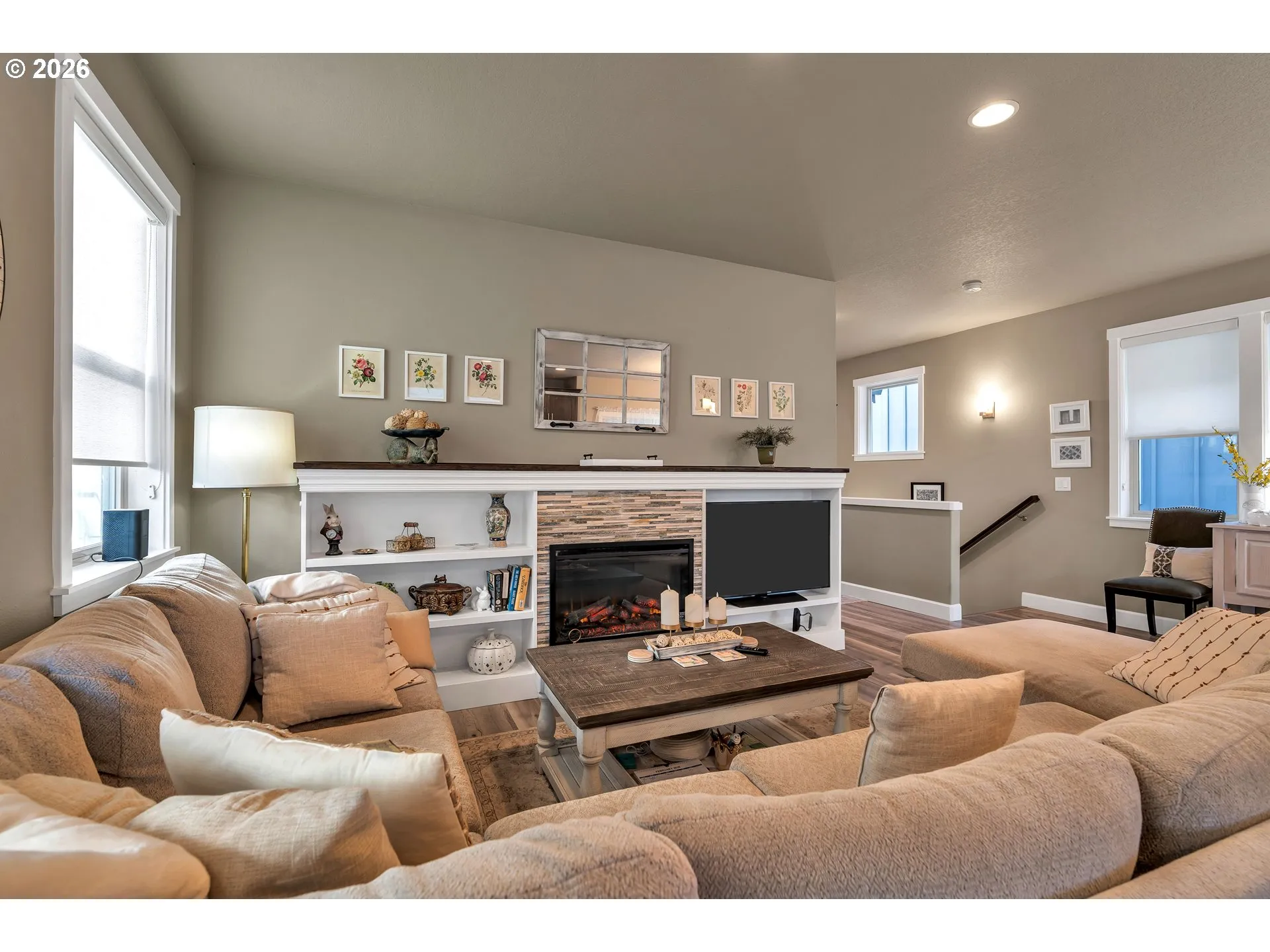 This inviting 3-bedroom, 2.5-bath home blends modern comfort with everyday convenience in a prime location. The light-filled open floor plan features luxury vinyl plank flooring and a cozy fireplace, creating a warm and welcoming atmosphere. The stylish kitchen is designed for both function and flair, offering a quartz island, stainless steel appliances, generous storage, and ample prep space. The open concept of the kitchen, dining and living room makes the room feel greater and fills it with light.Step outside to the deck overlooking a fenced backyard—ideal for relaxing, entertaining, or play. The private primary suite is located upstairs, featuring a spacious bathroom with double sinks and walk in shower, while two additional bedrooms and a full bath on the main level provide flexibility for guests or home office needs. All bedrooms offer wall to wall carpet making them cozier. Front yard irrigation and a low HOA that covers front landscaping make for easy, low-maintenance living.Enjoy close proximity to parks, trails, golf courses, dining, and shopping, with quick access to Intel, Nike, Genentech, Orenco Station, The Streets of Tanasbourne, MAX transit, top-rated schools, hospitals, and major highways including Hwy 26 and I-5—perfect for commuters. [Home Energy Score = 6. HES Report at https://rpt.greenbuildingregistry.com/hes/OR10241322]
