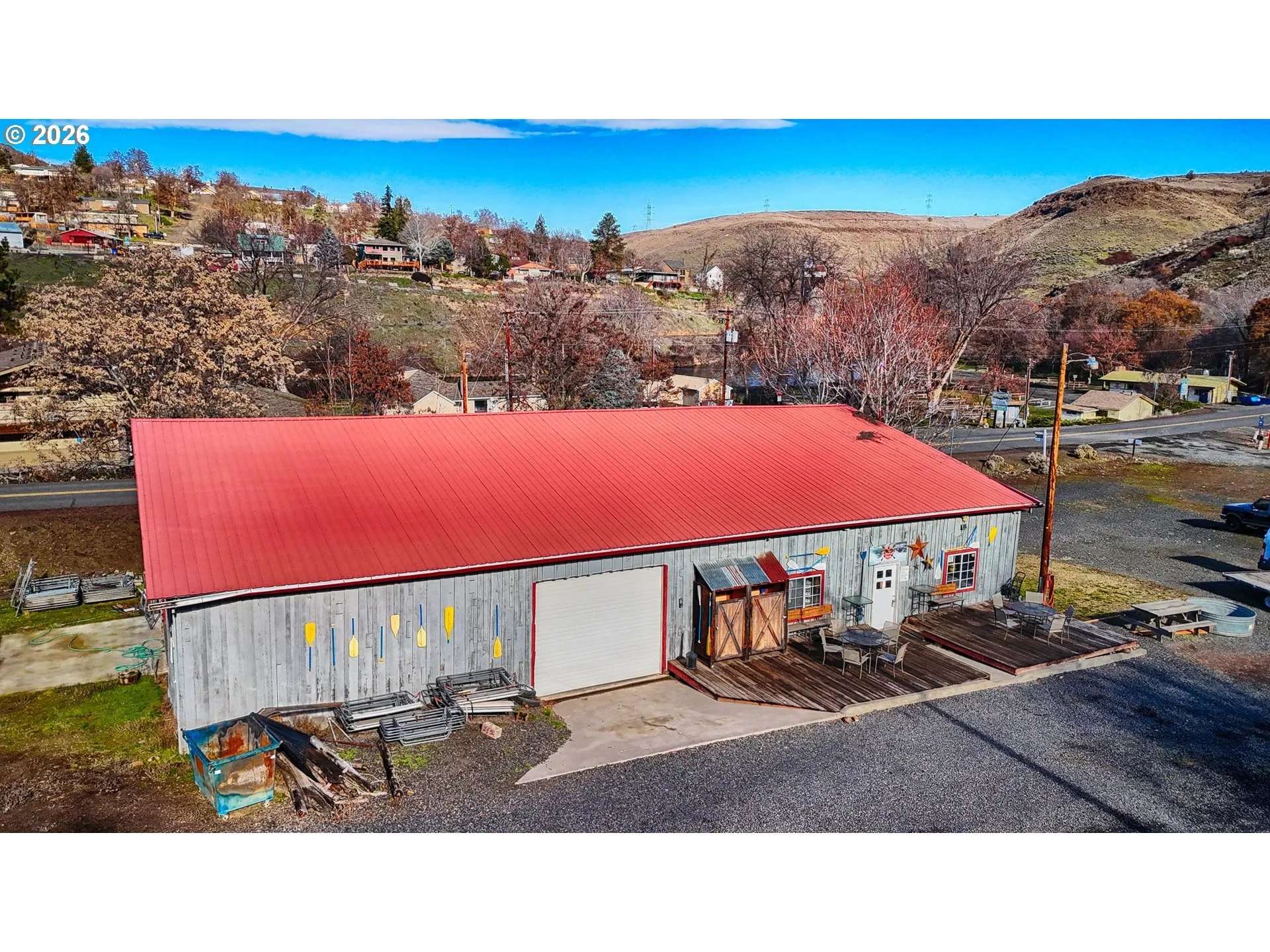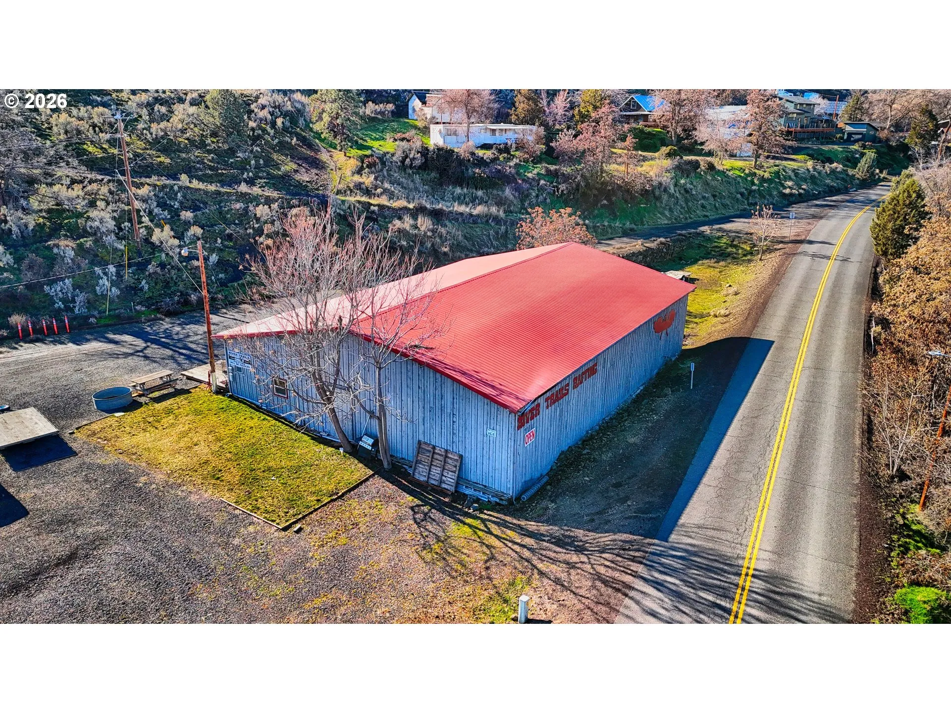 This spacious and highly versatile commercial property spans just over an acre and is zoned Recreational Commercial, Maupin’s most flexible and sought-after zoning designation. Located directly across the street from the Deschutes River, the property captures the sights and sounds of the river while benefiting from steady foot traffic generated by the area’s renowned river recreation. Maupin is a destination community celebrated for world-class rafting and fishing, drawing visitors year after year.With generous parking, abundant storage, and excellent frontage along a main Road, the property is well suited to continue its decades-long legacy as a rafting operation—or to serve as the canvas for your own visionary venture. The size and zoning allow ample room for expansion, whether that means additional commercial space, a boutique hotel, an RV park, or another creative use. Restaurants, shops, and local amenities are all within walking distance.Nestled along the Deschutes River, Maupin offers an exceptional lifestyle and investment setting, located approximately two hours from both Portland and Bend. With an average of 300 sunny days per year and year-round recreational opportunities including rafting, fishing, hunting, camping, and hiking, this property presents a rare opportunity to invest in one of Central Oregon’s most vibrant outdoor destinations.
