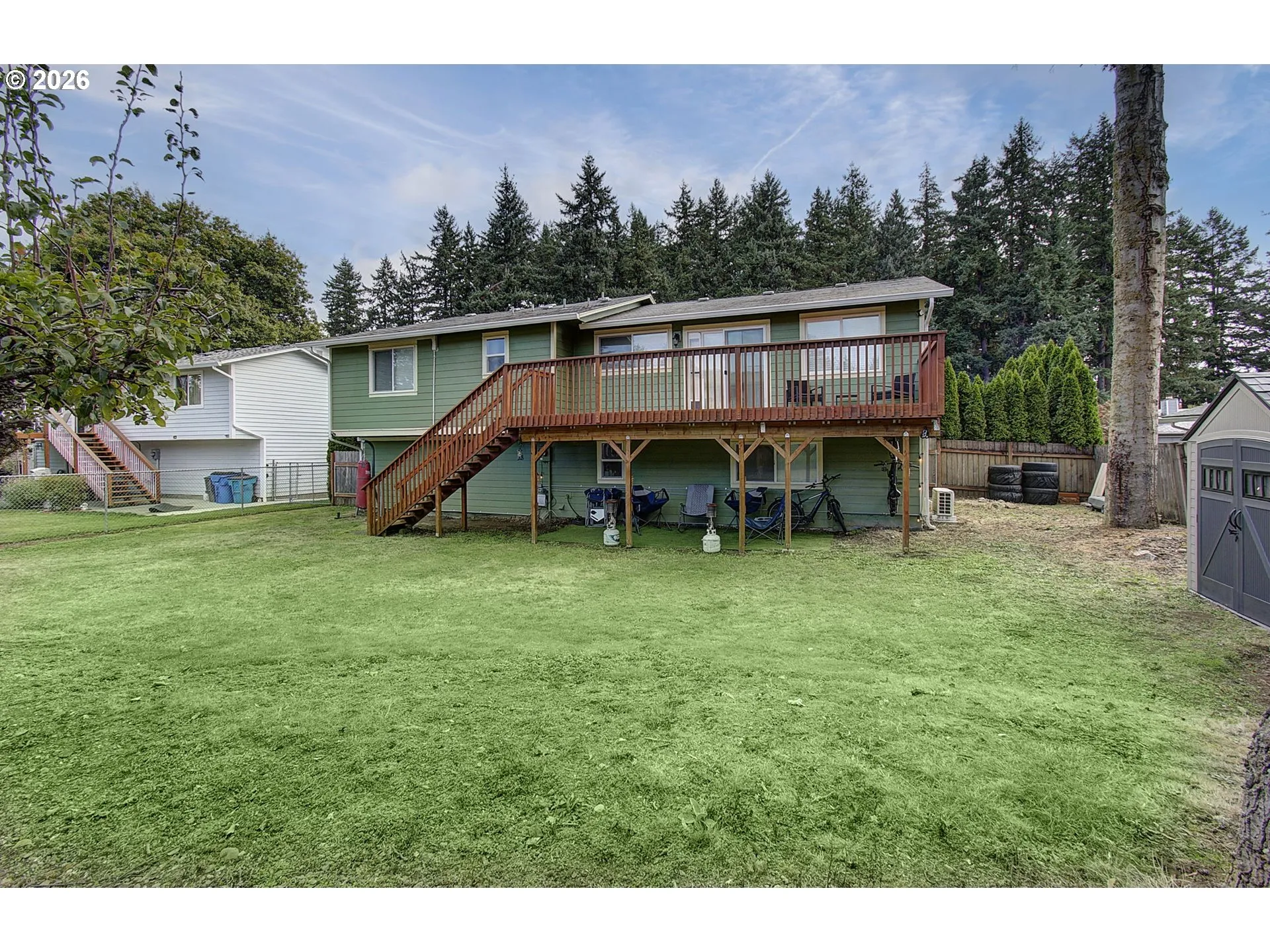 OPEN HOUSE MARCH 8TH 10-12pm Classic split-level home offering space, flexibility, and thoughtful updates throughout. Fresh interior paint and updated flooring create a clean, move-in ready feel. The main level features a bright living room with vaulted ceilings, expansive windows, and abundant natural light, along with a cozy fireplace that anchors the space. Upstairs you’ll find three bedrooms and two bathrooms. Downstairs offers a spacious family room with a second fireplace, an additional bedroom, and a third full bathroom — ideal for multi-generational living, guests, or a private second living area. Situated on a large lot with a deck for outdoor enjoyment and conveniently located close to a neighborhood park. A versatile floor plan with room to grow.
