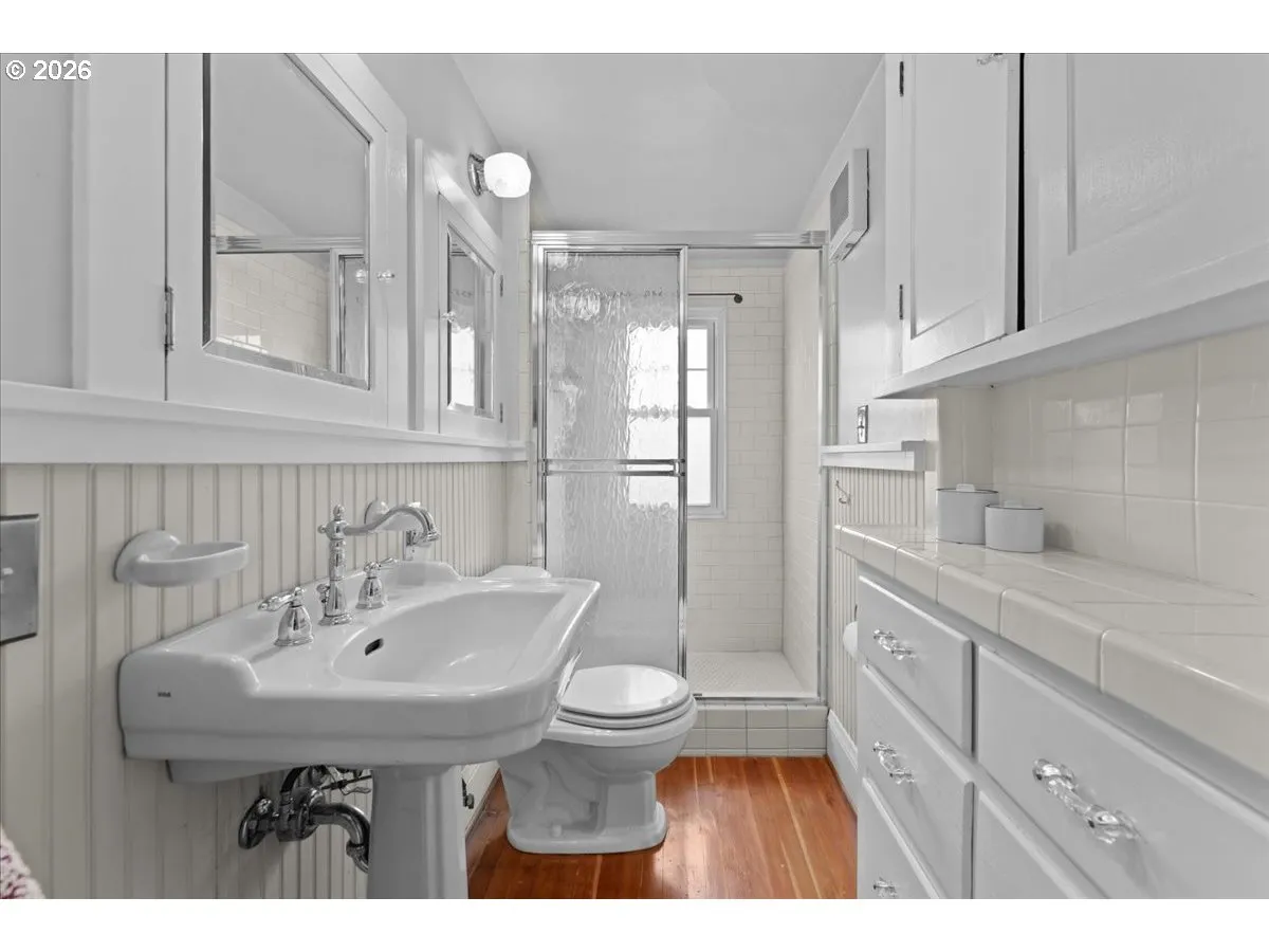 Get ready to fall in love. Perched in Portland’s sought-after Mock Crest pocket of Arbor Lodge, this inviting home surprises and delights at every turn. Step inside to an expansive living room bathed in natural light from oversized windows. A classic fireplace lends warmth, while gleaming hardwood floors flow easily into a spacious dining room made for lively dinner parties or unhurried evenings at home. The kitchen alone might seal the deal. Abundant cabinetry, generous counters, and a gorgeous gas range anchor the space—ready for weeknight experiments or Sunday feasts. Just beyond, a built-in bonus nook overlooks your soon-to-be herb garden, an easy perch for morning coffee or a quiet glass of wine at day’s end. The main level offers a comfortable bedroom and a thoughtfully updated bath that honors its vintage roots, with a pedestal sink and classic honeycomb tile. Upstairs, two additional bedrooms await—one with a sweet dressing nook—alongside a crisp bath rich with period detail, from schoolhouse light fixtures to original glass doorknobs. Downstairs, the lower level blends cabin-cozy warmth with a modern sensibility: a generous, finished flex space and full bath invite guests, game nights, creative work, or lively celebrations. Even the laundry room feels considered, with a farmhouse sink, butcher block counters, open shelving, and abundant cabinetry. Outdoors, raised garden beds and a welcoming patio set the stage for summer dinners and evenings around the fire pit. An oversized garage and additional covered parking offer ample room for projects, gear, and weekend pursuits. Just blocks from tree-lined Columbia Park, you’re perfectly placed for North Portland living—new cafés along N. Lombard, neighborhood favorites in Kenton and Overlook, and easy access to bike routes, transit, and I-5. Adidas, the University of Portland, and downtown are easy commutes. A home with real character and modern ease—comfortable, capable, and ready for its next chapter. [Home Energy Score = 4. HES Report at https://rpt.greenbuildingregistry.com/hes/OR10204876]