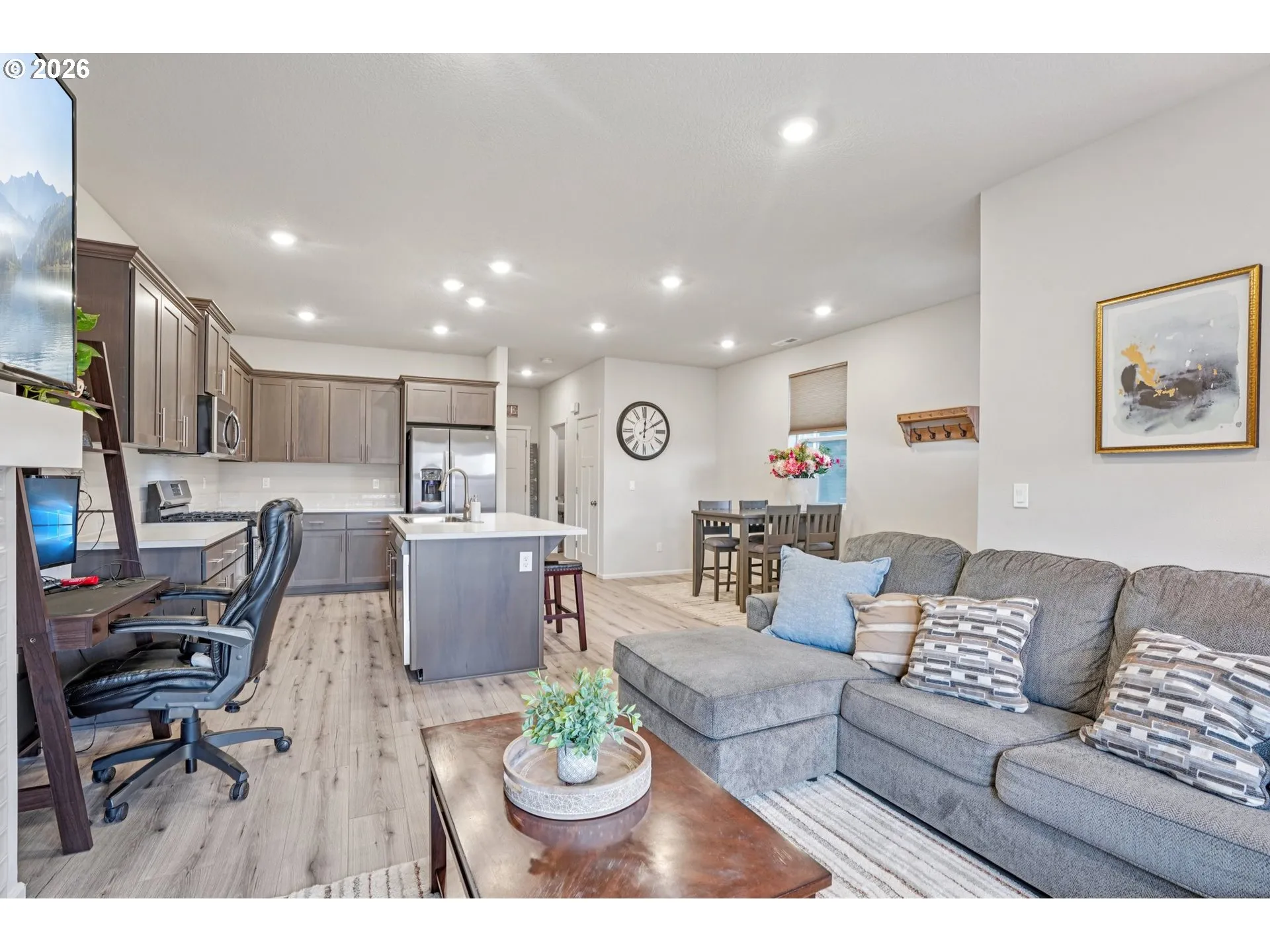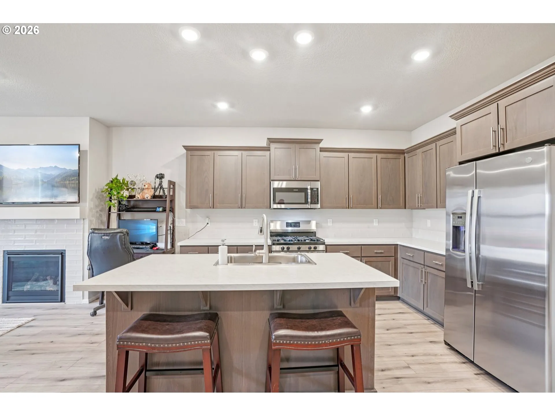 Welcome to this thoughtfully designed, meticulously maintained home in the desirable Baker Creek North community of McMinnville—with a versatile floorplan for any lifestyle including a great work-from-home space. Set in the heart of Oregon wine country, you’re minutes from charming downtown McMinnville, renowned vineyards, major education and employment centers, including Linfield University, Chemeketa Community College, and George Fox University, with easy access to coastal destinations for weekend escapes.Inside, soaring ceilings and an open-concept layout create a bright, inviting atmosphere with laminate flooring and a cozy gas fireplace anchoring the main living space. The kitchen is both stylish and functional, featuring stainless steel appliances, a built-in oven and range, pantry, and a generous island ideal for meals, entertaining, and everyday living.Upstairs, a spacious loft offers exceptional flexibility—perfect as a home office, family room, play space, creative studio, or calming retreat. The primary suite provides a relaxing escape with a walk-in closet and spa-inspired ensuite featuring double sinks, a soaking tub, and a walk-in shower. Additional bedrooms are well-suited for children’s bedrooms, guest rooms, or versatile use for study or hobbies, making this home especially appealing for both professionals and growing households.Enjoy year-round comfort with forced-air gas heating, central air conditioning, and a tankless water heater. The attached two-car garage includes a smart LiftMaster opener system with integrated video/audio features and secure delivery compatibility. High-speed fiber internet is available for modern connected living. Outside, the fenced yard with sprinklers and low-maintenance landscaping offers space for kids, pets, and outdoor enjoyment. Move-in ready and vacant for quick possession—an excellent opportunity in one of McMinnville’s most sought-after neighborhoods.