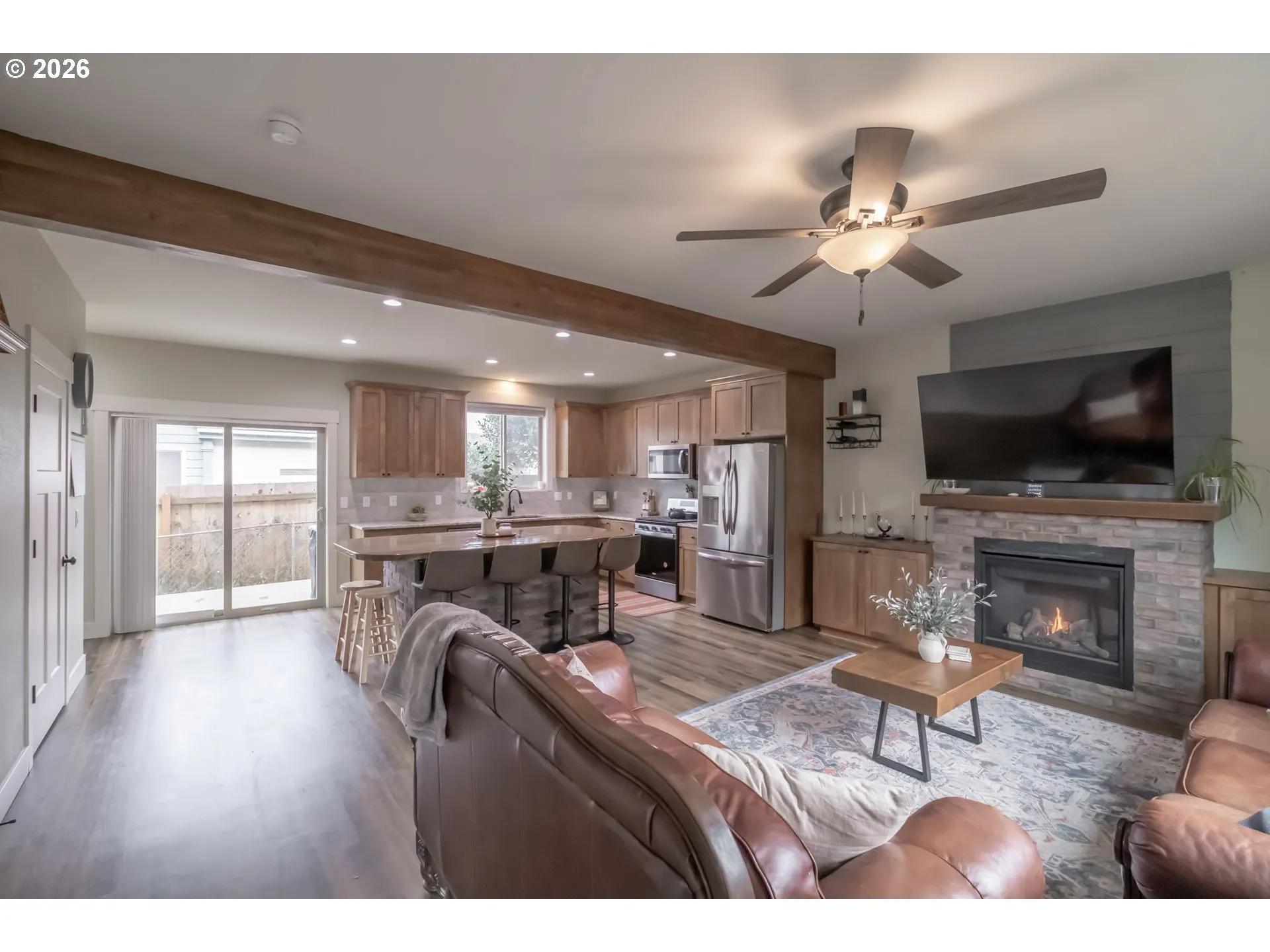 Coastal comfort meets modern design just three blocks from the sand at 41 Fern St in Gleneden Beach. Built in 2022, this thoughtfully designed 2 bedroom, 3 bath home offers a stylish, low maintenance retreat moments from the shoreline and minutes to Salishan Coastal Lodge, Salishan Golf Links, local dining, and nearby Depoe Bay. The main level features an open concept layout with tall ceilings, luxury vinyl flooring, and a gas fireplace that anchors the living space. The kitchen showcases shaker cabinetry, granite countertops, an undermount sink, and stainless steel appliances, with a convenient half bath on this level for guests. Upstairs, both bedrooms include ensuite baths with matching quality finishes. One offers a step in shower and soaking tub, while the other features a step in shower. The primary suite includes a Juliet style balcony with ocean facing views, an ideal spot to take in coastal air and the sound of the waves. Exterior materials include fiber cement siding and a composition roof, complemented by energy efficient vinyl windows. A ductless heat pump provides heating and cooling, and an on demand water heater adds everyday efficiency. Whether you are seeking a full time residence or a coastal getaway near beaches, golf, and shopping, this well appointed home offers quality construction and an exceptional Gleneden Beach location.