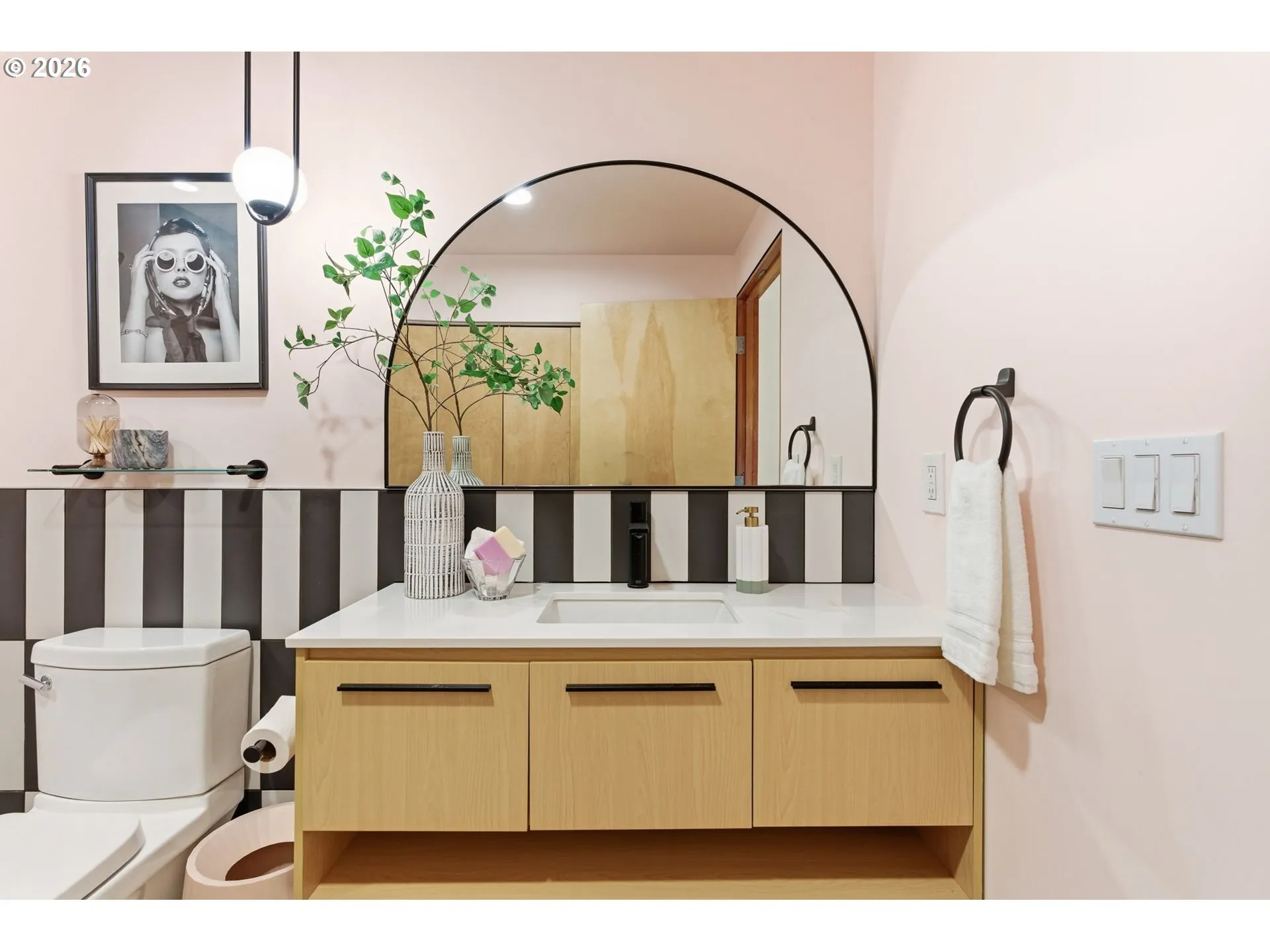 Industrial character meets refined design in this striking one-bedroom loft at the historic Chown Pella. 10-foot beamed ceilings, oversized warehouse windows, and a dramatic mix of exposed brick and concrete walls create a space rich in texture and filled with warm western light. The fully remodeled kitchen features a large island, brand-new Café appliances, and updated cabinetry and pantry, seamlessly connecting to the open living and dining areas.Elevated design details can be found throughout, including statement lighting, curated hardware, and custom wallpaper that add personality while complementing the building’s original industrial architecture.Upstairs, the lofted bedroom offers a private retreat complete with a California Closets system for exceptional storage and organization.The remodeled bathroom features a spacious walk-in shower, tile flooring, polished finishes, and newer washer and dryer. Residents of the Chown Pella enjoy access to a shared rooftop deck with sweeping city and mountain views.Perfectly positioned in the heart of the Pearl District, this home offers effortless access to some of Portland’s best restaurants, galleries, parks, and shopping, while also providing convenient access to major freeways for easy commuting.