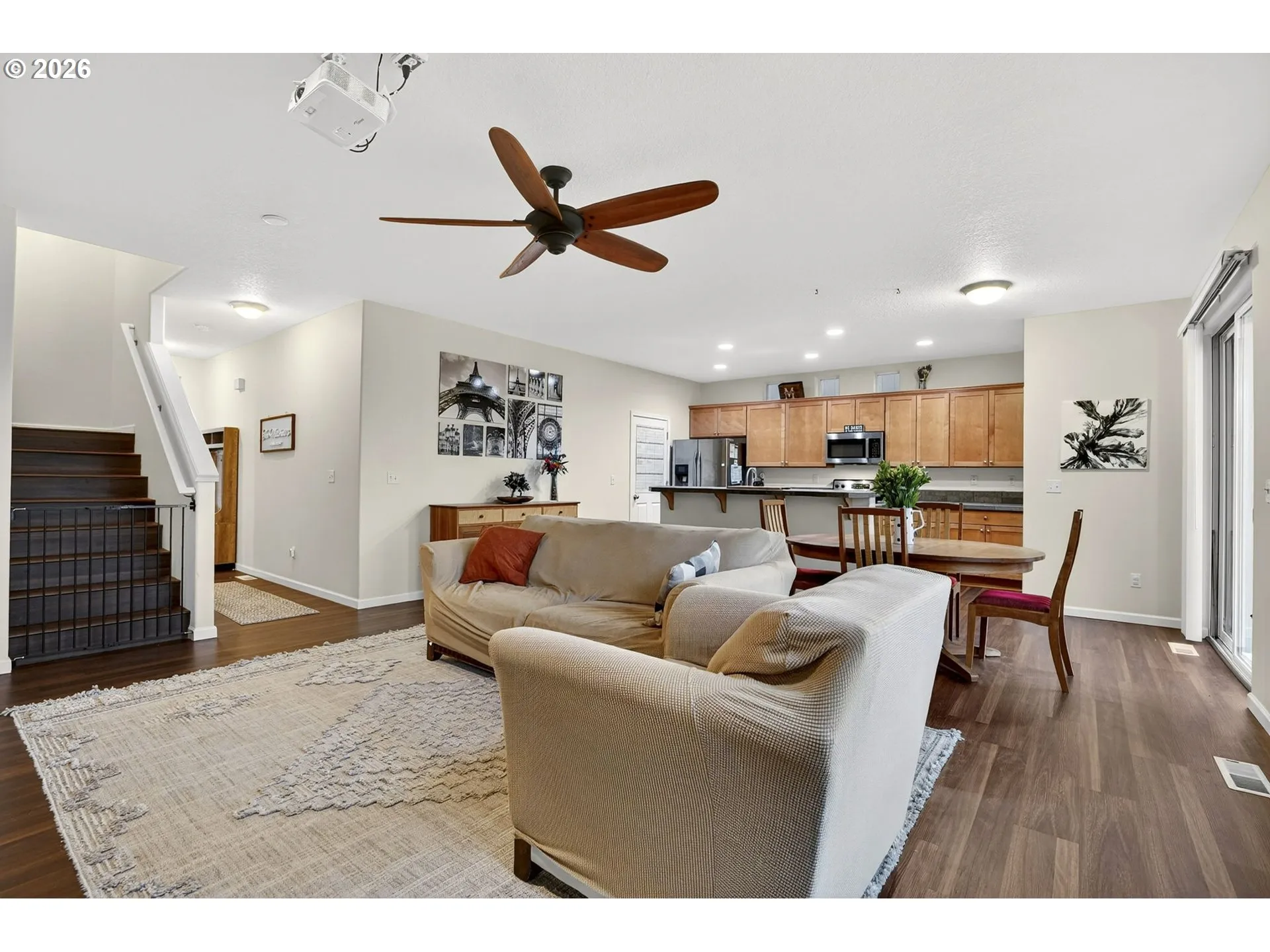 Bright, inviting, and easy to love! This beautiful home features a spacious open floor plan with laminate flooring, an eating bar, and a dining area—perfect for everyday living and hosting friends. Upstairs laundry adds extra convenience, while the fully fenced backyard with a cozy patio is ideal for relaxing or entertaining. Located in a charming community with walking paths and a park/playground. HOA-maintained front yard means low-maintenance living—just move in and enjoy! Brand NEW ROOF to be installed end of March. [Home Energy Score = 7. HES Report at https://rpt.greenbuildingregistry.com/hes/OR10244188]