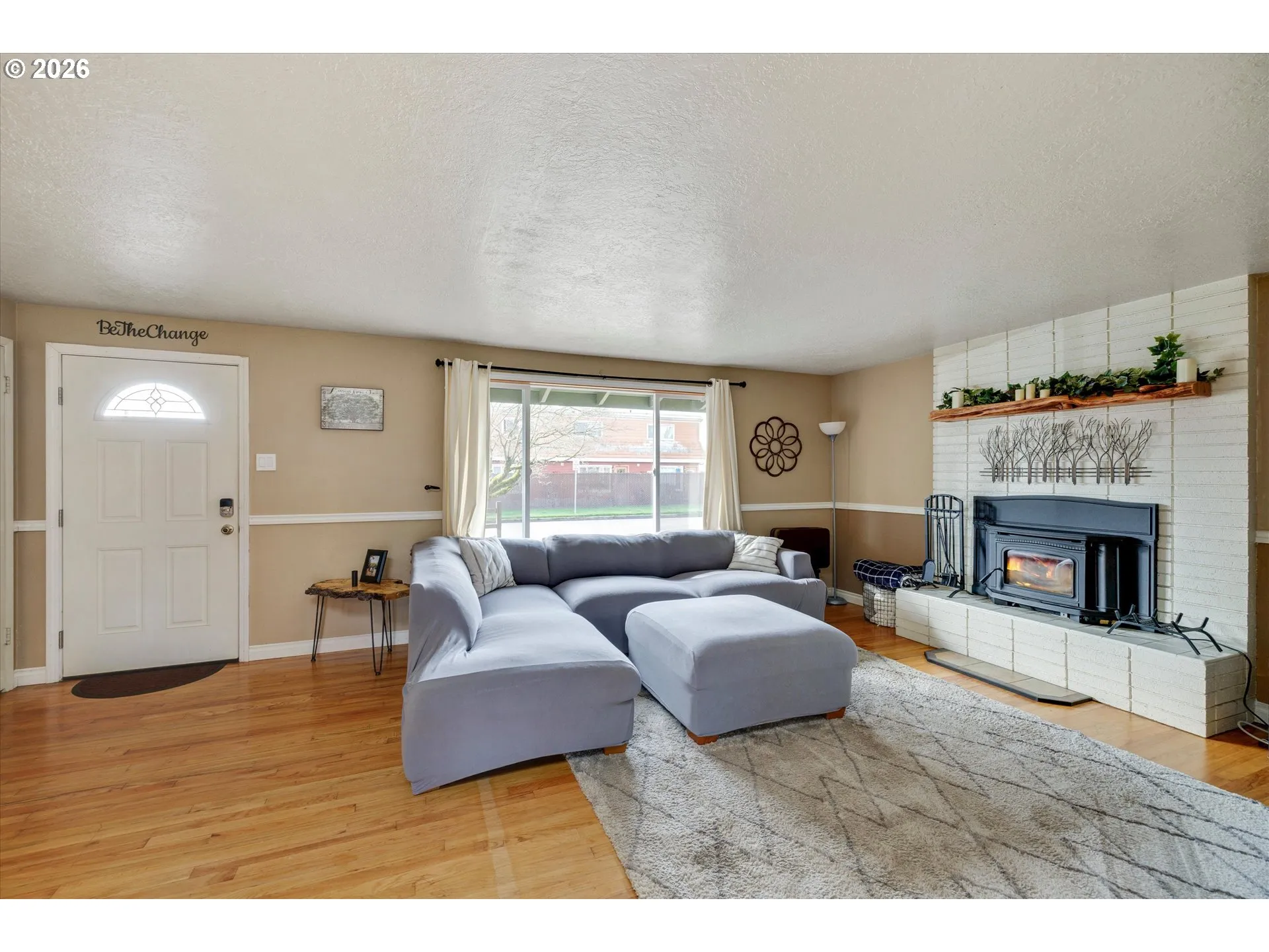 Charming and updated 2-bedroom, 1-bath home in a convenient central Hillsboro location. With 960 square feet, this inviting starter home features hardwood floors, a cozy wood stove, and thoughtful updates including the bathroom, flooring, kitchen counters, French doors, and vinyl windows. The kitchen offers original wood cabinetry with classic midcentury appeal, plus a dishwasher and included kitchen appliances. A large covered and enclosed patio with electrical provides versatile bonus space for hobbies, storage, or year-round enjoyment. Spacious backyard includes a fire pit, tool shed, and room to park a utility trailer. Attached 1-car garage adds everyday convenience. All this, plus low property taxes make this a perfect, affordable option. Located near downtown Hillsboro shops, restaurants, and transit, this home offers a great combination of charm, function, and accessibility.