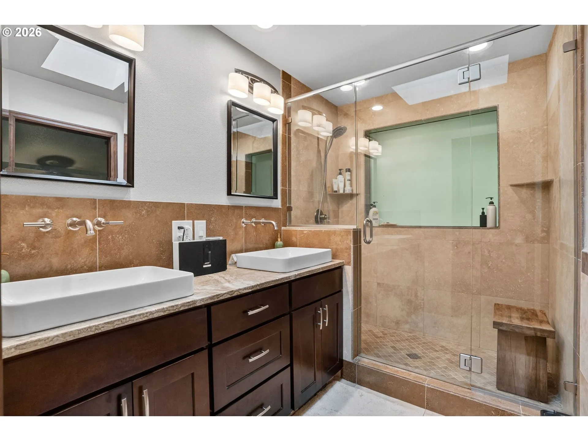 Private West Hills retreat just minutes from downtown and the Nike/Tech corridor! Light and bright with hardwood floors, a beautifully refreshed kitchen featuring stainless steel appliances, and an inviting layout that balances comfort and function. The home offers a flexible split floor plan with the original primary suite on the main and a stunning upper-level addition that includes a spacious secondary suite with a spa-inspired bath, generous living area, and home office. Enjoy exceptional outdoor living with four balconies, decks, and patios plus a covered front porch with a fireplace, all overlooking a spacious yard in a private, forest-like setting. Enjoy peaceful surroundings with mature landscaping, new outdoor lighting, and an upgraded sprinkler system that enhances the private, forest-like setting. Feels like living in the mountains, yet close to everything – only 10 minutes to downtown SW or NW Portland. Steps from Washington Park trails and the zoo, this quiet, spacious home combines nature, privacy, and convenience in one exceptional location. [Home Energy Score = 2. HES Report at https://rpt.greenbuildingregistry.com/hes/OR10131427]