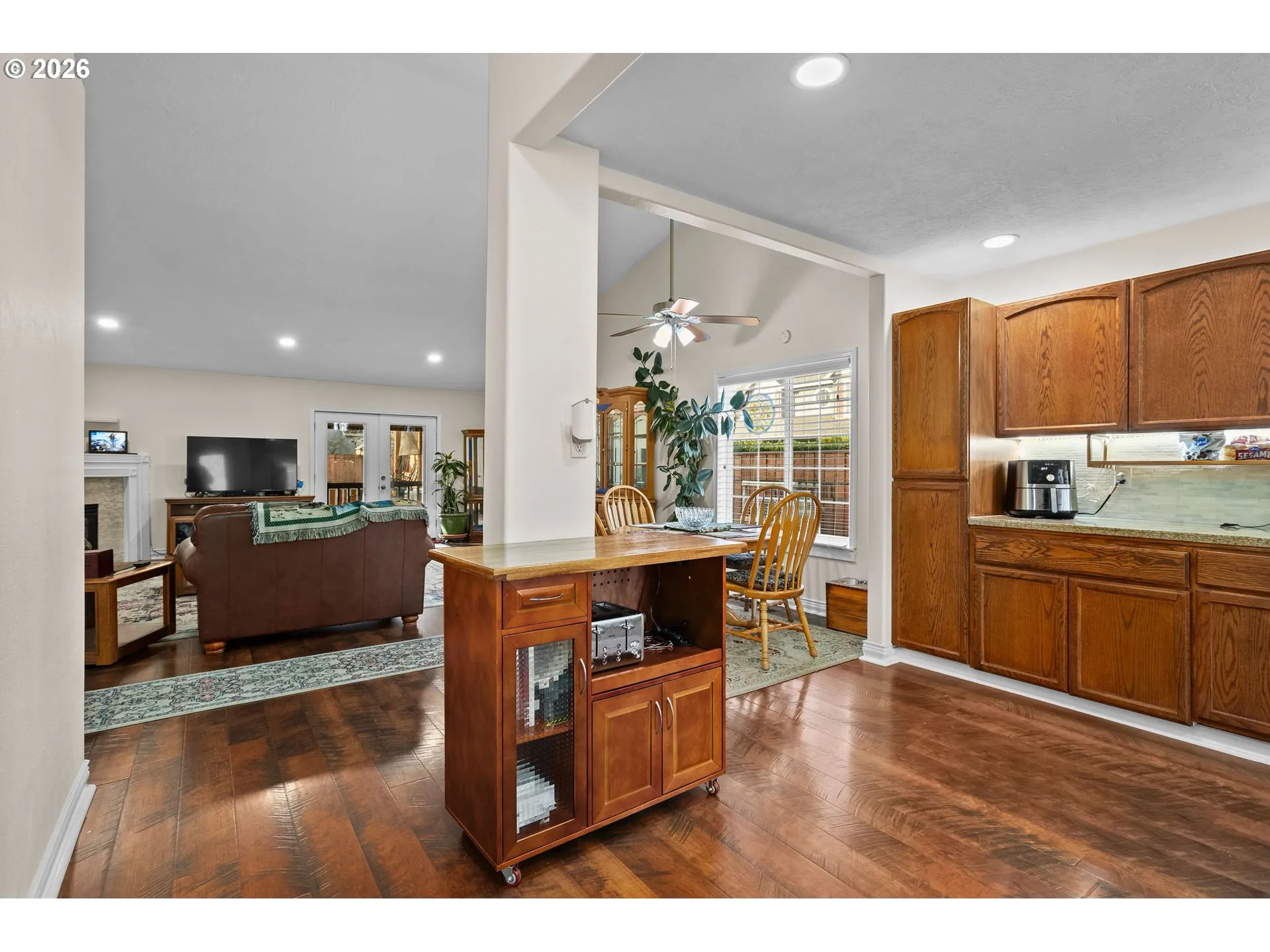 Quiet Cul-de-Sac Living Meets Modern Comfort in this Single-Level Ranch! This impeccably maintained, single-level ranch features a sought-after great room floor plan with extensive recent updates throughout. Tucked away in a quiet, well-kept cul-de-sac, the home is just a half-mile stroll from the 32-acre Gradin Community Sports Park, offering easy access to the Gresham Arboretum’s paved trails, pickleball courts, a dedicated dog park, and stunning views of the local buttes.Inside, the home feels airy and expansive thanks to vaulted ceilings and newer laminate flooring that flows through every room. The heart of the home is the light-filled great room, anchored by a cozy gas fireplace and elegant French doors. The kitchen is equipped with granite countertops and stainless steel appliances, while the primary suite serves as a private retreat featuring a walk-in closet, walk-in shower, and its own set of French doors leading directly to the deck.Designed for longevity, the home features a new roof and covered Trex deck with a durable metal roof installed just 3 years ago, while the Hardiplank siding, furnace, AC, and interior/exterior paint have all been updated within the last 7 years. The private, fully fenced backyard is built for year-round use and comes complete with a sprinkler system, a tool shed, and vibrant rhododendrons that bloom in the spring. Additional storage is easily accessible in the attached two-car garage, which includes convenient attic space.