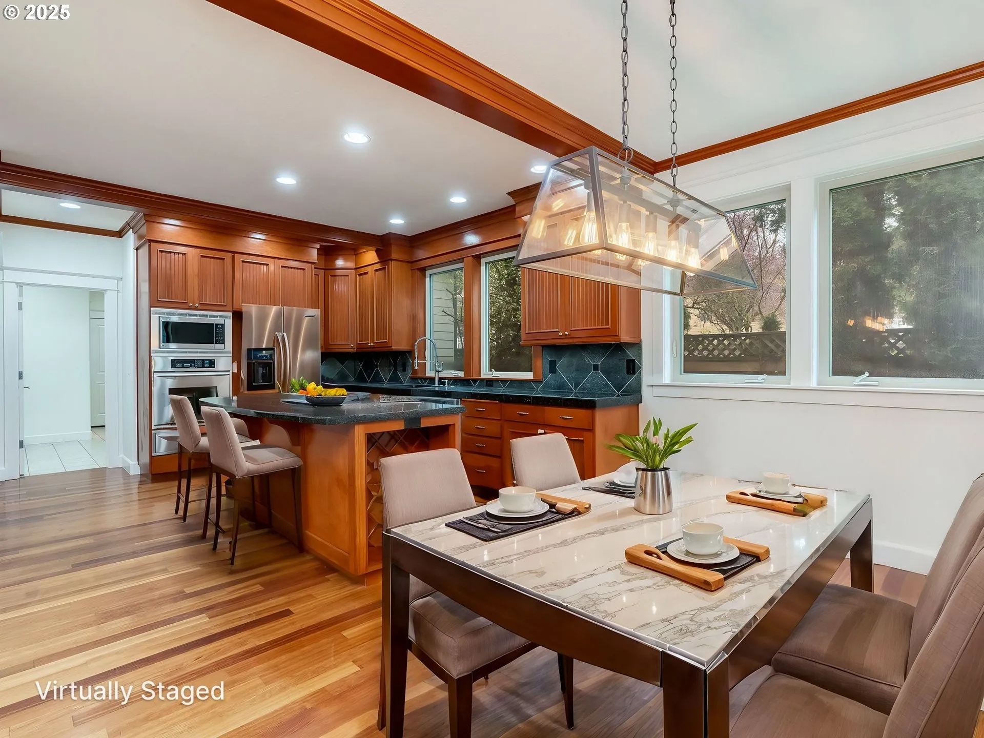 Welcome this sprawling home located in Emerald Valley Estates, a beautifully updated home in a fantastic neighborhood near Happy Valley Park. Enjoy the Serene Suburban feel while being just minutes from Shopping, Dining options & Top-rated Schools! Fresh interior and exterior paint give this home a modern and inviting feel, making it truly move-in ready. Designed with an open floor plan, this home is perfect for entertaining, with a spacious kitchen that flows seamlessly into the living, dining & outside spaces. It features two primary suites, including one on the main level, offering flexibility for multi-generational living or private guest accommodations. A dedicated office/library with custom built-in shelving provides an ideal space for remote work or relaxation. The huge four-car attached garage comes with a massive bonus space above, offering endless possibilities—whether you dream of a home gym, hobby room, game space, or even a private bowling alley! Located in a highly desirable neighborhood with no HOA, this home is just waiting for you to call it yours! Schedule your private tour today!