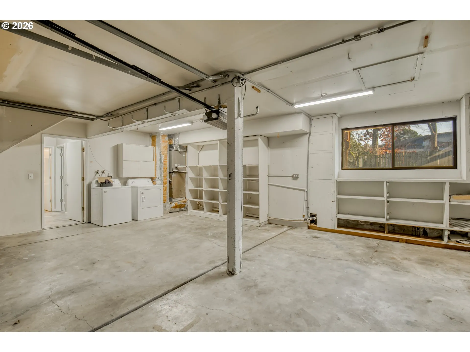 Well-maintained split-level home on a generous lot with an exceptionally large, usable backyard—a rare find in the area. The expansive outdoor space offers excellent flexibility for gardening, entertaining, play, or future outdoor projects, with a deck that extends the living space outdoors. No HOA.Inside, the split-level layout provides comfortable separation of space with 3 bedrooms and 2 baths. The living and dining areas feature vaulted ceilings and slate floors, creating an open, airy feel. The hall bathroom is thoughtfully finished with tile extending to the ceiling.The kitchen is clean and functional with painted cabinetry and original finishes, offering a solid foundation for future updates and personalization. All kitchen appliances are included, including a stainless steel refrigerator, along with washer and dryer.The home is equipped with forced-air heating and air conditioning for year-round comfort.The attached garage offers versatile utility with two overhead doors and openers, a side service door to the yard, and washer/dryer hookups—ideal for storage, hobbies, or workshop use. A fenced side yard provides additional flexibility and may offer future options for expanded access or storage configurations, subject to buyer verification and any required modifications.This home presents as move-in ready, while offering clear opportunities to add value over time—a rare combination of space, functionality, and long-term potential in a convenient Beaverton location.