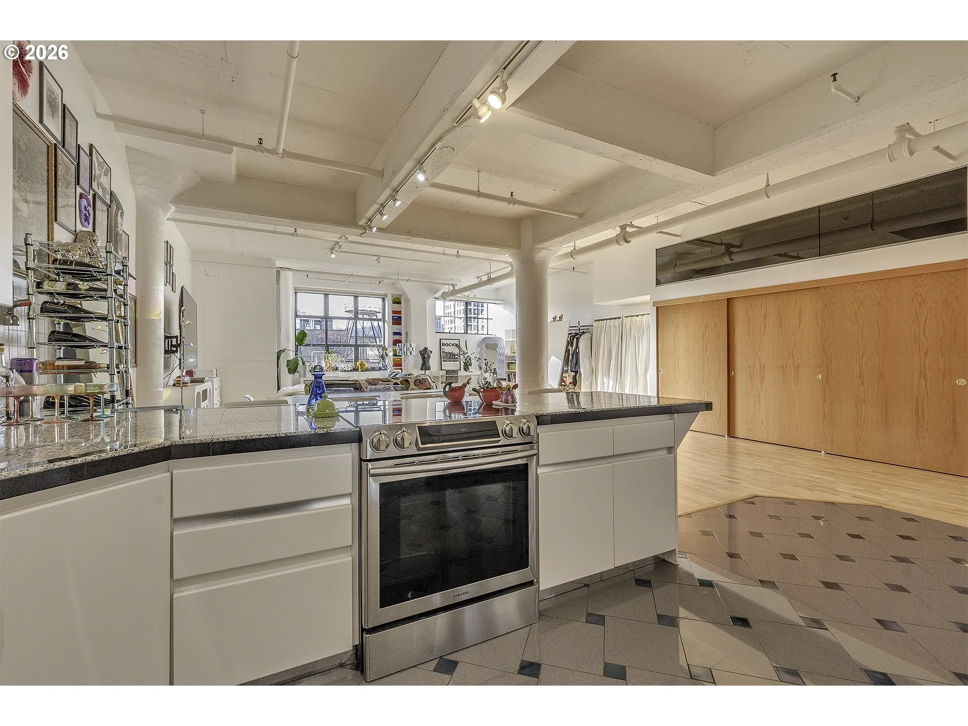 This condo is for those who want a large work/live loft with high ceilings, original warehouse windows, a full kitchen, in a beautifully-maintained move-in ready space. Unbeatable value for the size, priced to sell, in one of Portland Pearl District’s most iconic buildings – the historic Irving Street Lofts – with parking space included. Secure building with fob access to the entrance, elevator, garage, and rooftop deck (which has a 360-degree view with WiFi and rentable garden boxes). Located on one of the most sought-after streets in the Pearl. It’s safe and close to everything: NW 23rd, Forest Park, and Portland’s best restaurants & shops. Zoned to allow limited commercial use so you if you run a business, save on costs and run it from home!