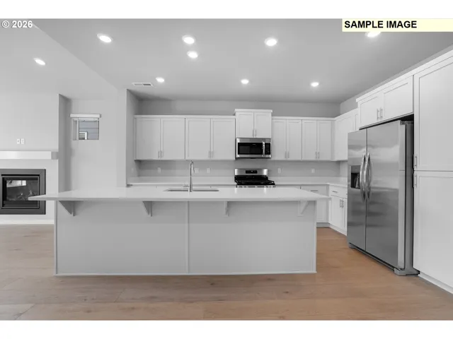 Welcome to Brynhill by Lennar and the Chambrey plan in beautiful North Plains. Multitasking and entertaining is made simple in this two-story 3 bedroom, 2.5 bath single-family home. An open floorplan is shared between the great room, kitchen and nook on the first level of the home. Sliding glass doors behind the nook lead to the outdoor space. All three bedrooms are located upstairs, including the primary suite with an en-suite bath featuring double vanities with separate bath and shower plus a spacious walk-in closet. The two secondary bedrooms share a convenient Jack-and-Jill style bathroom in between them. Interior highlights include quartz countertops, shaker-style cabinets, LVP flooring in kitchen/entry way, LVT flooring in baths, a cozy fireplace in the great room and much more. This home also includes central air conditioning, a refrigerator, washer and dryer, and blinds—all at no extra cost! This brand new community is loaded with amenities including multiple onsite parks featuring pickleball, basketball, a putting green, a cornhole area, playgrounds, and picnic areas. Homesite 433, estimated completion: Spring 2026. Incentives available with use of preferred lender.