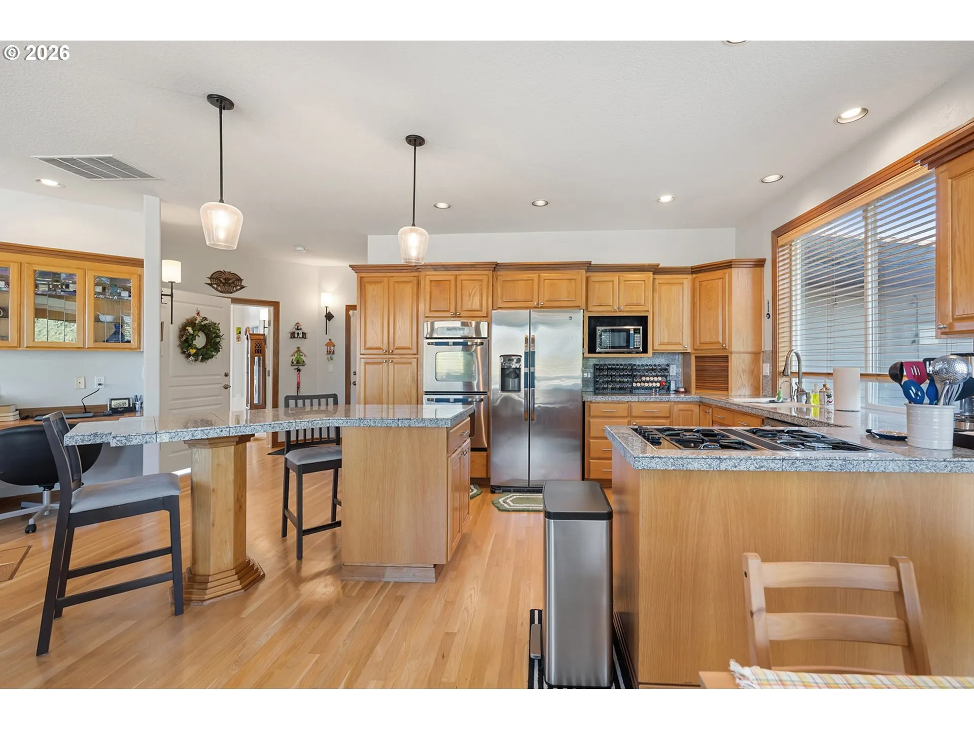 Exceptional Bull Mountain estate offering multi-generational living. Quality construction with soaring ceilings, expansive windows, custom hardwoods, built-ins, and a 4-car garage. Seasonal valley and mountain views, including Mt. Hood and Mt. Adams. Located in a desirable luxury neighborhood. Lower-level apartment features a kitchen, a living room with a fireplace, an oversized bedroom, a full bath, and a ground-level entry. Interior and exterior painted in 2023; updated lighting, newer carpet, roof replaced in 2021, and water heater in 2025. Situated on a spacious 1/3-acre corner lot with room for all.