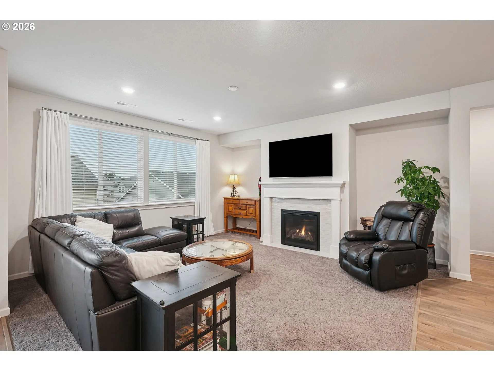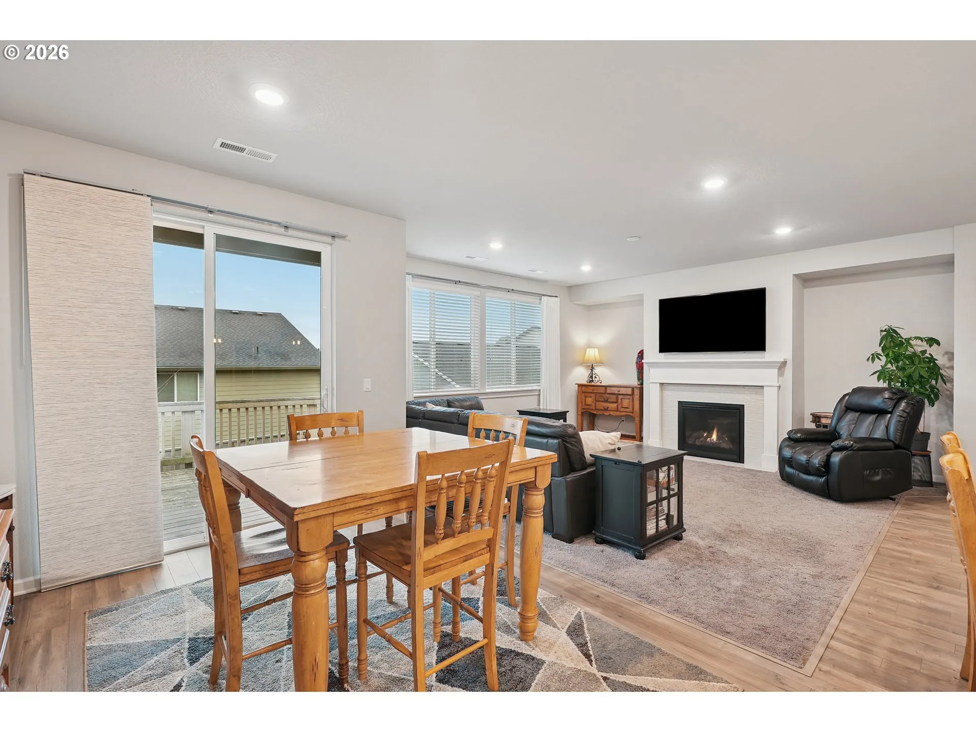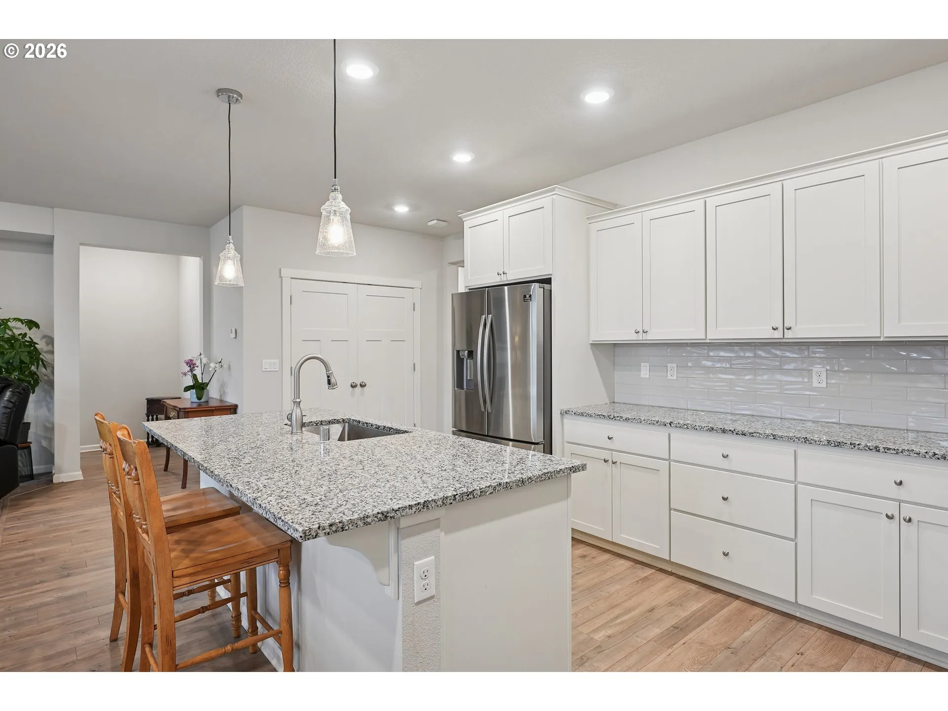 OPEN HOUSE TODAY 2/15. Beautiful one-level home in Ridgefield’s highly sought-after Kennedy Farm community. This move-in-ready property offers comfortable single-level living with a level driveway, thoughtful upgrades, and a bright, open layout filled with natural light. The kitchen features white cabinetry, a large granite island, stainless steel gas appliances, and seamless flow to the dining and living areas, where a cozy gas fireplace creates a warm gathering space. Laminate floors, double-pane vinyl windows, and forced-air heating with central A/C add everyday comfort and efficiency. Tankless water heater and Wi-Fi-certified features provide modern convenience.The spacious primary suite includes a spa-like bathroom with a soaking garden tub and walk-in shower. Exterior highlights include front and back landscaping, sprinkler system, deck, fenced backyard, and window blinds already in place—truly ready for you to move right in.Located in one of Ridgefield’s most popular neighborhoods- schedule a tour today!
