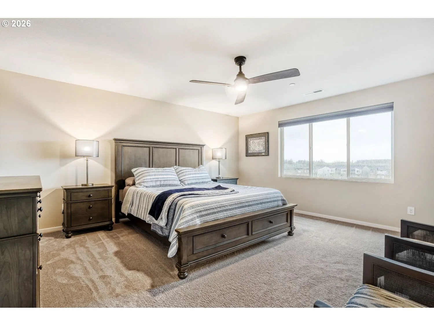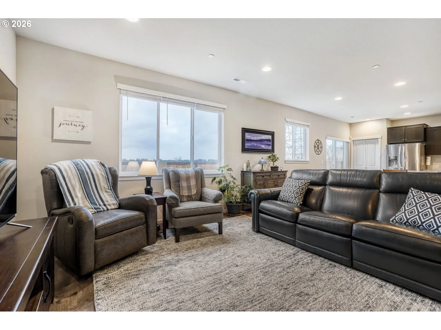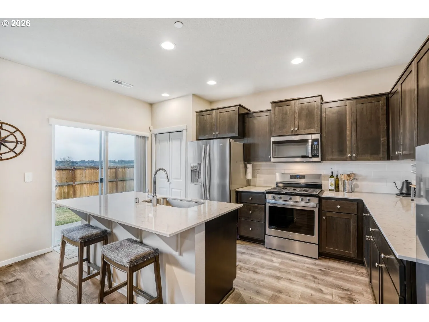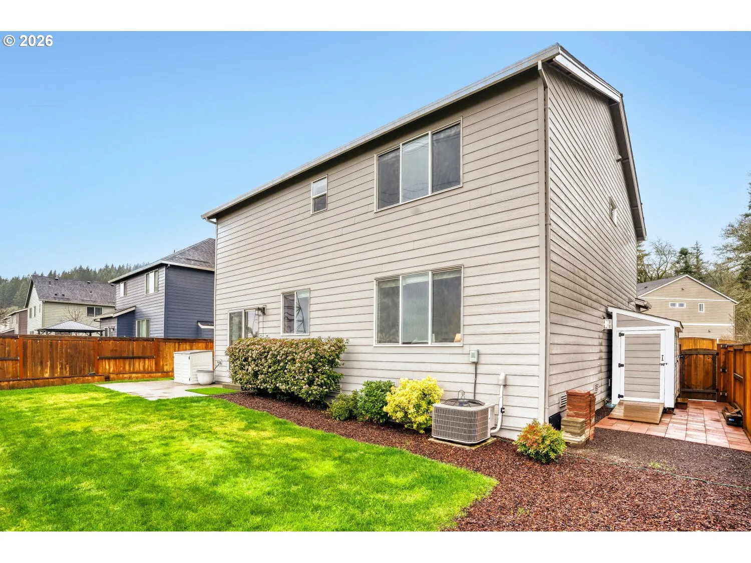 Beautifully maintained 5 bedroom, 3 bath home built in 2019 located in the highly desirable Heights at Green Mountain community in Camas. Perfectly positioned on a quiet culdesac backing to peaceful greenspace with no homes directly behind you, this 2,219 sq ft home offers privacy, views, and an exceptional layout. The popular floorplan features a main level bedroom and full bathroom with walk in shower which is ideal for guests, multigenerational living, or a home office. The open concept living area showcases a cozy gas fireplace and flows seamlessly into the kitchen featuring quartz counters, island eating bar, stainless steel appliances, gas range, built in microwave, pantry and dining nook. The refrigerator is included in the sale. Upstairs you will find a spacious 15 x 17 primary suite. The ensuite bathroom features a walk in shower, double sinks and an enormous walk in closet. There are three additional bedrooms upstairs including one with custom built in desks that create the perfect work from home space. A 12 x 17 bonus space offers flexibility and can be used for a variety of needs. Washer and dryer are included for added convenience. Step outside to a fully fenced backyard with in ground sprinklers and peaceful greenspace behind the home. The impressive 2 car garage features a durable poly floor, abundant storage and overhead racks stay. Additional features include central air conditioning and window blinds throughout. HOA dues of $75 per month provide access to outstanding neighborhood amenities including a community center, swimming pool, walking trails and a beautiful 4 acre park. This home offers comfort, space and an incredible location in one of Camas’ most desirable neighborhoods.