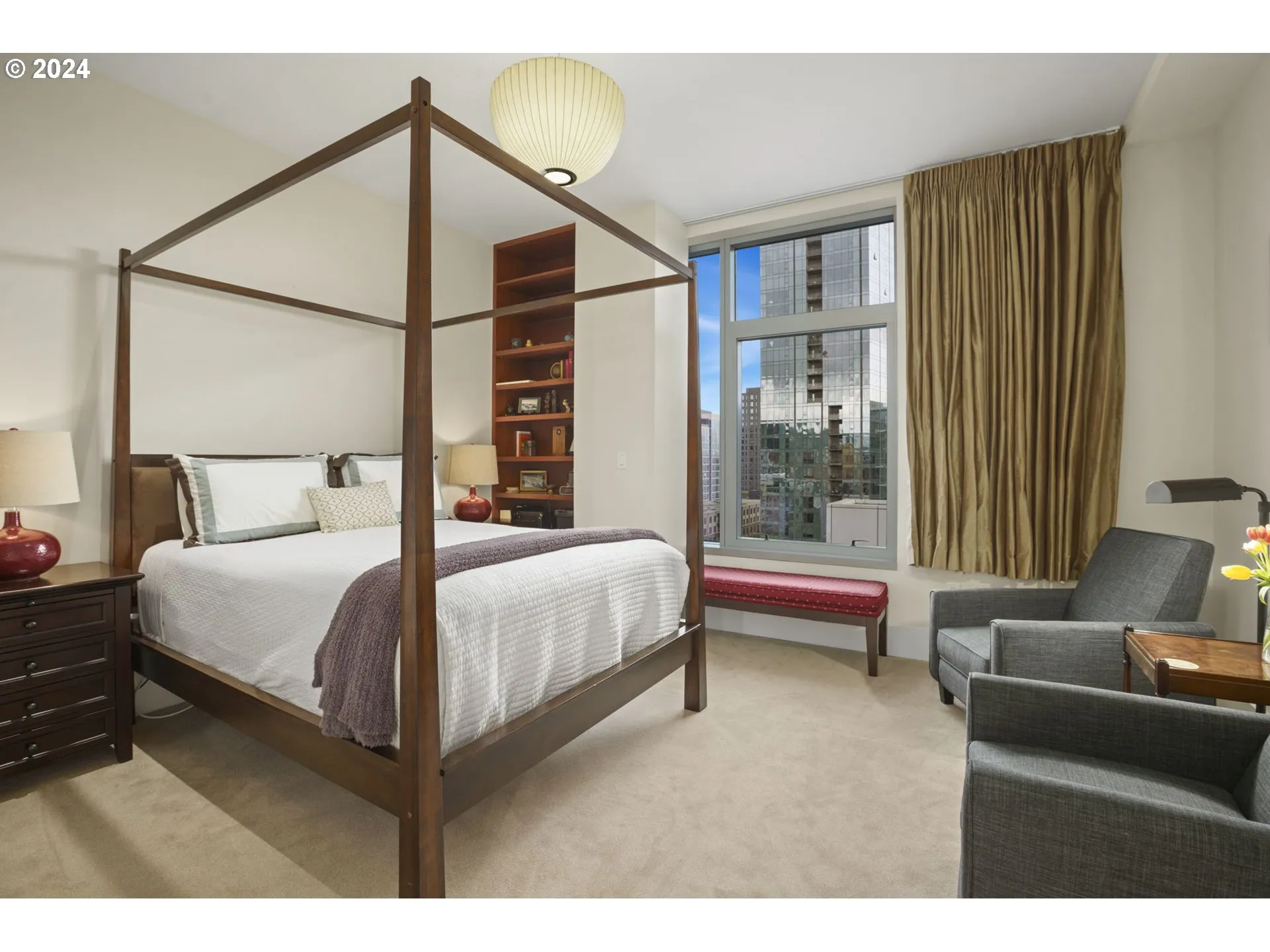 One of only two units of its floorplan type, Metropolitan 1008 is the ultimate urban residence. Expansive living and dining rooms are fantastic for entertaining! Living room features beautiful NW views of the west hills, Tanner Springs Park, and the river. It also includes custom built ins, a gas fireplace, and access to the large covered patio. Kitchen with huge island with cooktop, Neil Kelly cabinetry, and high end stainless steel appliances including a brand new oven. Primary suite features park views, a large walk in closet with custom closet organizers, and a luxurious ensuite bathroom with jetted tub, walk in shower, and marble floors and countertops. Two additional guest bedrooms offer lots of flexibility – use as guest rooms, office, or den! Includes two parking spaces with EV charging and 1 storage unit. Secure building with 24 hour concierge. Top notch amenities including two guest suites, gym, conference room, entertaining space, and temperature controlled wine storage room.