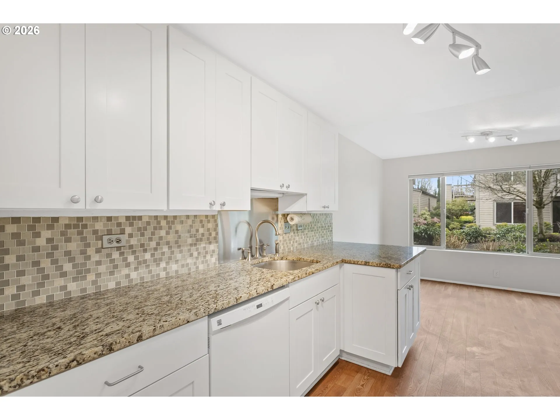 This Augusta is a popular layout because it’s an end unit, bringing abundant natural lighting from three sides of this lower unit. Walk out onto your covered concrete patio and enjoy the beautifully landscaped courtyard all year, because the Condo HOA does all exterior maintenance. Entered onto tile floors and low-maintenance laminated floors in the kitchen and Dining areas. Enjoy an updated kitchen with white cabinets, granite countertops, a full-height tile splash, an under-mount kitchen sink, a stainless-steel range, and a microwave hood. Enjoy the heating and cooling of a ductless system, the warmth of the fireplace, updated bath vanities, a Primary bath tile shower, and a replaced guest bathtub/shower. New Carpet and Paint! Move in ready! A 55+ Planned community with a Clubhouse, scheduled activities, exercise, Sauna, swimming pool, billiards, ping-pong, arts and crafts studio, ballroom, Library, meeting/event rooms, ballroom, and more!