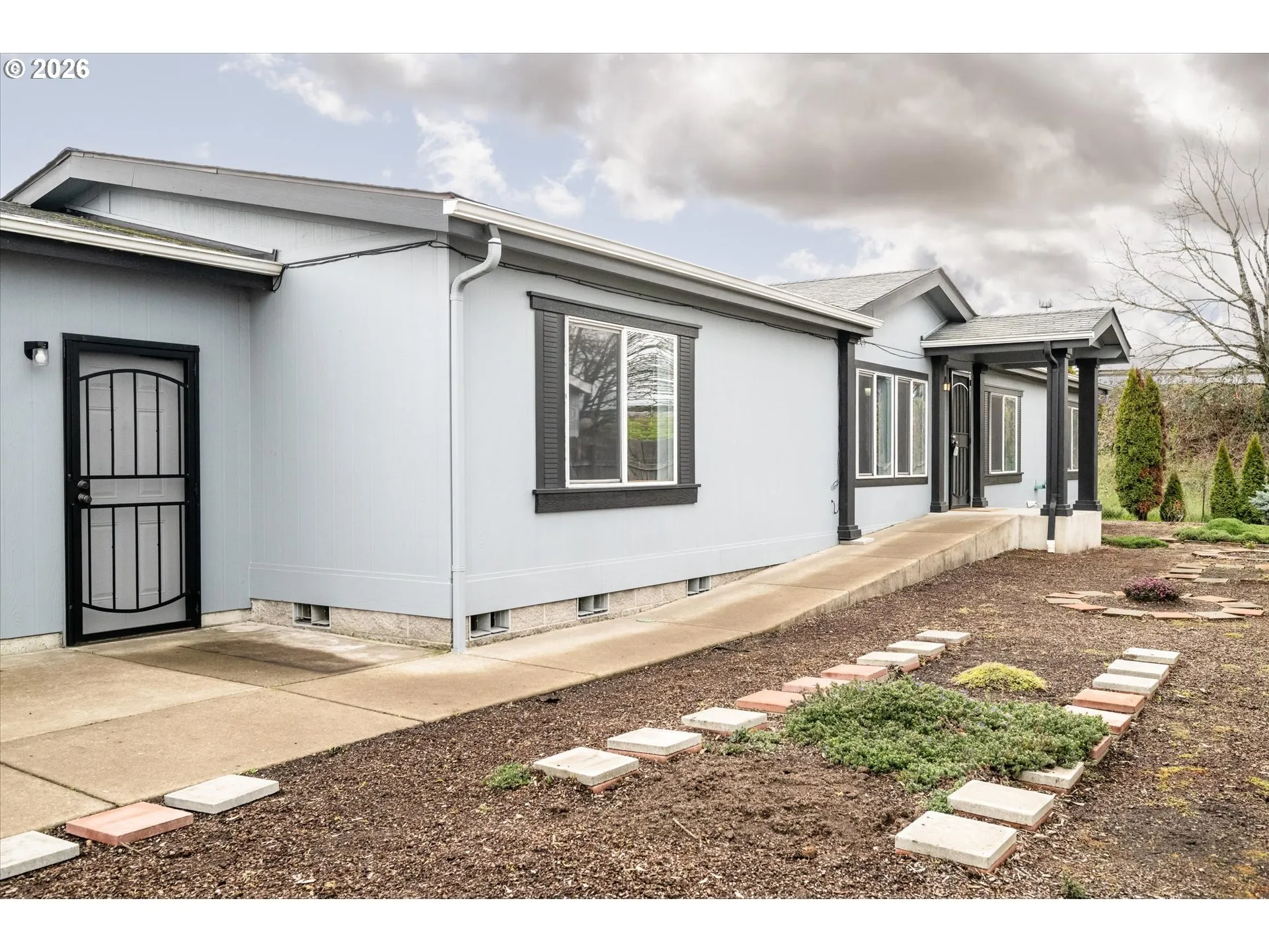Discover this spacious and inviting home on its OWN land located in Maia Park, a highly desirable, beautifully maintained, gated 55+ community. This move-in ready home is packed with 2020+ upgrades including a new roof, Leafguard gutters, bamboo flooring, plush bedroom carpets and fresh paint inside and out. Accessibility is a breeze with a sturdy, poured concrete ramp leading directly to the front door. Inside, soaring vaulted ceilings create an airy, light-filled atmosphere. The heart of the home is a massive dine-in kitchen, boasting abundant storage and prep space with plenty of room for a central island. The thoughtful floor plan offers a private primary suite tucked away from the three additional guest bedrooms—perfect for a home office or hobbies. All but one feature walk-in closets! Complete with a two-car garage, central AC, and a low-maintenance fenced yard, this home offers the perfect balance of luxury and practicality, all just minutes from the area’s best shopping, dining, and services. Washer, dryer, and all appliances are included.