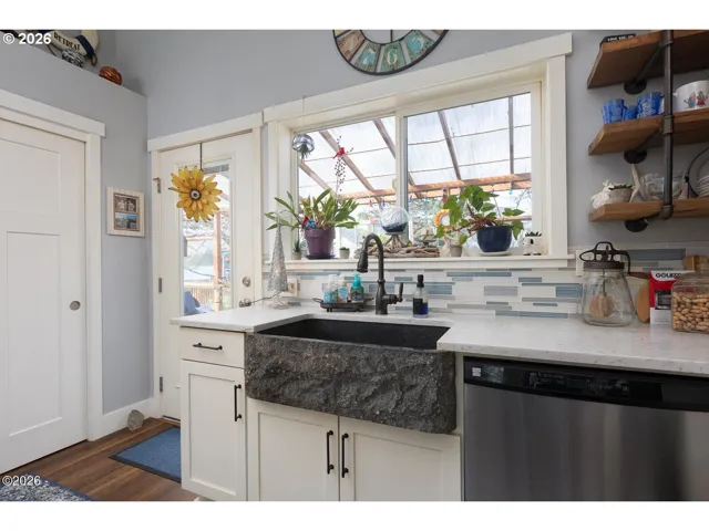 Welcome to this gorgeous, one-owner custom home built by Whistler Construction in the heart of Lincoln City. Located just a few short blocks to the beach, this beautifully crafted 1-bedroom, 1-bathroom home offers the perfect blend of coastal charm and modern comfort — with shops, restaurants, hiking trails, and fishing spots all nearby. Step inside to soaring vaulted ceilings, luxury vinyl plank flooring, and exceptional attention to detail throughout. The inviting living room features a cozy gas fireplace, while the kitchen is equipped with a gas range that will delight any home chef. The stunning bathroom boasts a walk-in tiled shower and a spacious walk-in closet, combining style and functionality. Enjoy your morning coffee or host gatherings year-round on the enclosed deck — a truly special space designed for both relaxation and entertaining. Outside, the fully fenced front yard is perfect for your furry friends, and the home backs up to a peaceful creek, offering a serene natural backdrop rarely found in such a central location. Bonus opportunity: An additional 729 sq ft basement with a separate entrance provides incredible flexibility. Finish the space to suit your needs — whether as additional living quarters, guest space, or potentially a rental for passive income — or simply enjoy the abundance of storage. Custom-built and lovingly maintained by its only owner, this Lincoln City gem is a breath of fresh air and a rare opportunity near the Oregon coast.