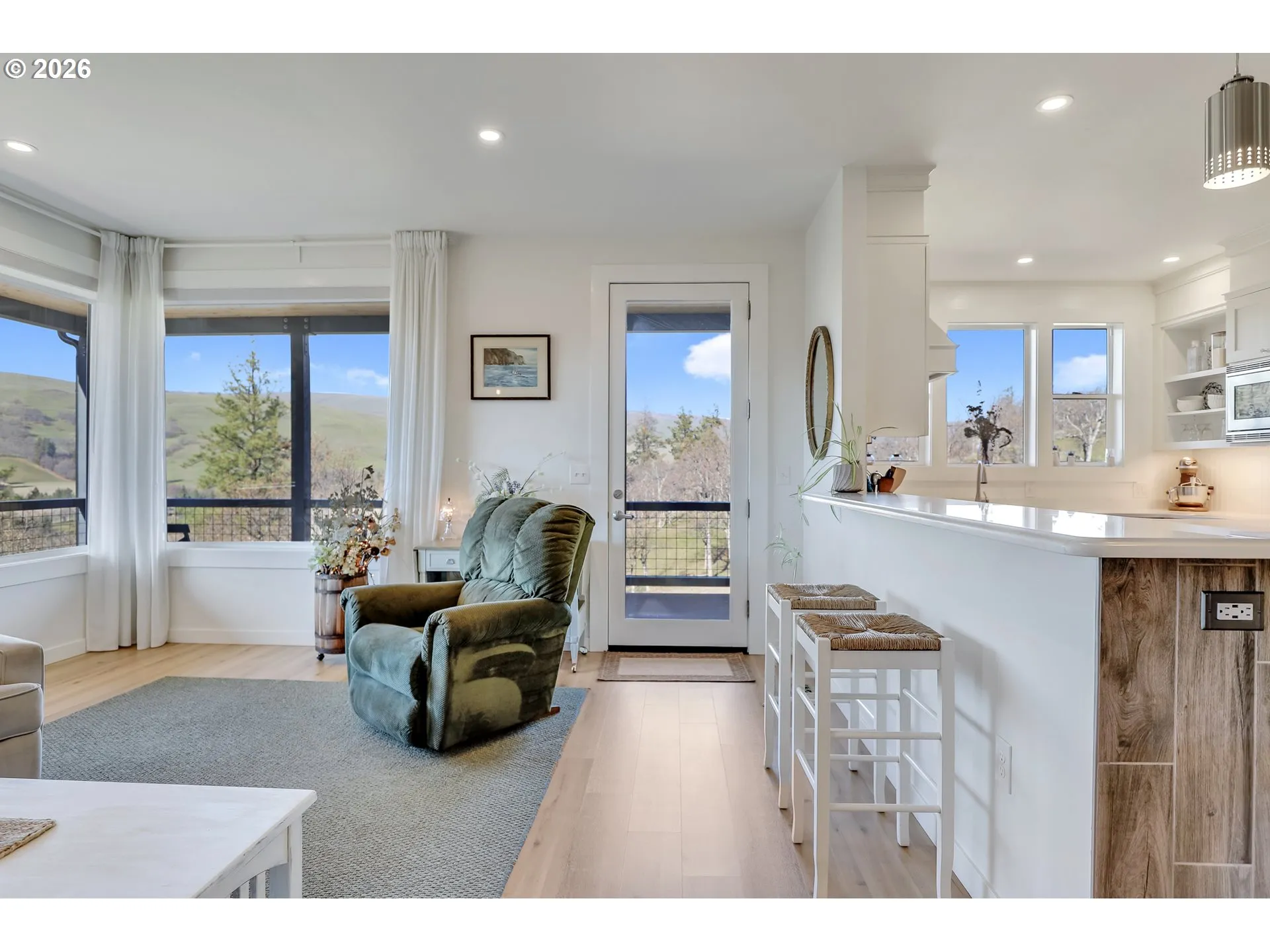 Presenting this rare opportunity to own a custom built retreat just three miles from town. Over 2200 sq ft 3 bedroom 2 bath all on one level and another 1800 that could be finished on the lower level.The spacious and efficient kitchen has lots of counter space, easy reach drawers and lit glass front cabinets.Some other nice features include a pot filler plumbed over the glass top range, black porcelain tile backsplash, custom hood vent matching cabinetry, quartz counters, Kohler farm sink, Rev-a-shelf pull outs to easily reach the back corners with motion lights.The nine foot ceilings and lovely wide crown molding adds to the elegance of this modern farmhouse.The great room makes it easy to enjoy the view of the hills across the valley through the wall of windows.There is deck access from the great room and the composite deck wraps all the way around the front of the house to the primary suite.The primary suite has a full view door for deck access, the double closets have cute boutique like closet organizers. Enter the ensuite bath through the frosted paned-glass pocket door. Tile and quartz surrounds the jetted tub with a elegant detailed lit niche for bath oils, romantic chandelier hanging above. The picture window brings in natural light and the views are spectacular. There are porcelain tile floors, beautiful tile shower with multiple body jets and a custom leaded transom light that allows natural light into the shower. The double sink vanity with a quartz counter adds to this luxurious space.There is plenty of room for equipment/machinery and/or RV parking. There is even a covered space off of the shop/ultimate man cave/she shed. This shop has all the amenities for any hobby or craft you may wish to create. Recently used as a “canning kitchen”, this space is heated and insulated.Across the driveway and through the field is a sweet retreat from technology. Created as a “playhouse” but the possibilities are endless.