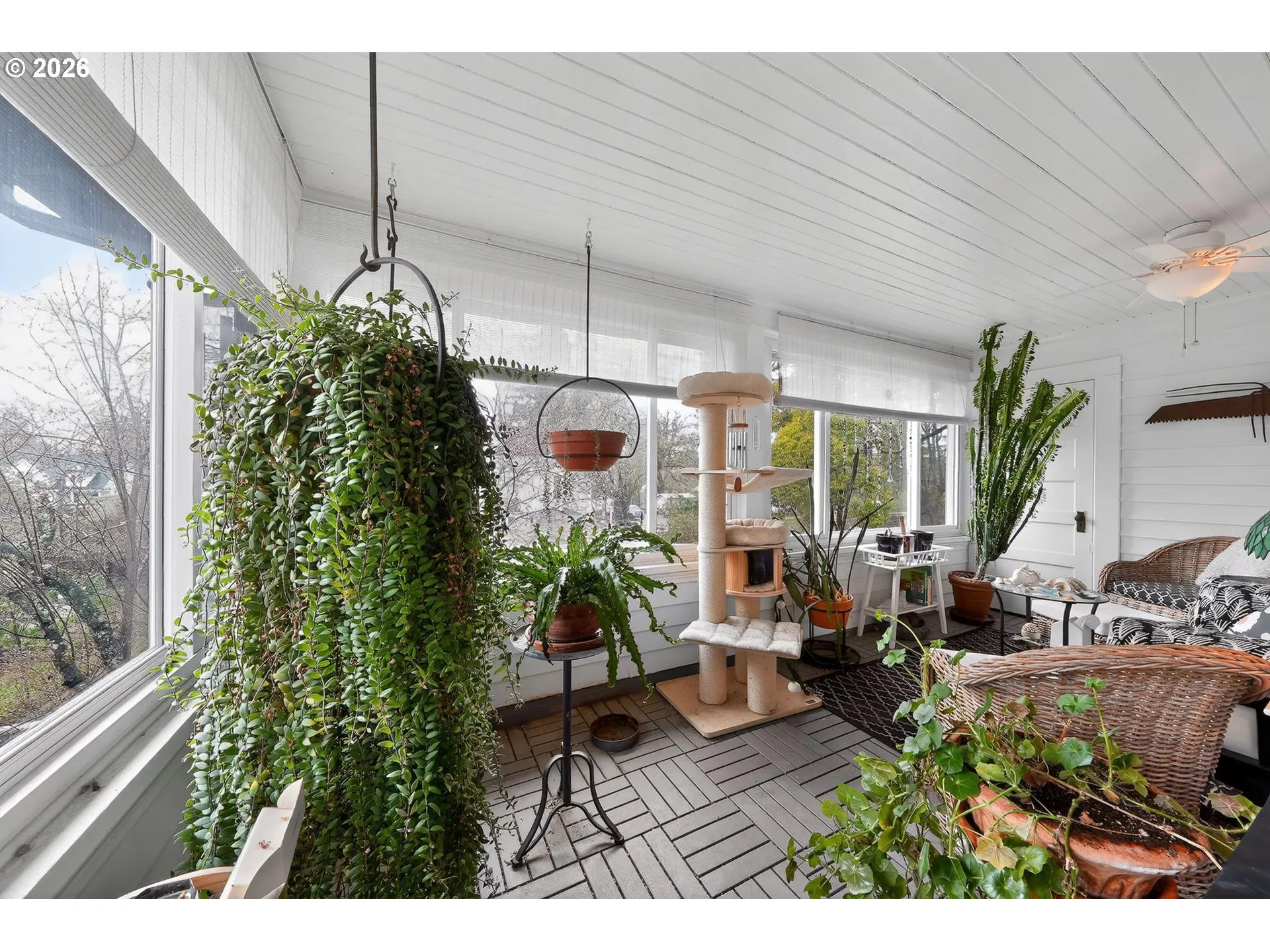 Welcome to this beautifully maintained three-level home offering timeless charm and exceptional space. Featuring 4 bedrooms and 3 baths, this home begins with a welcoming front porch complete with a charming swing—perfect for relaxing mornings or quiet evenings. Inside, a grand entry foyer leads to rich hardwood floors that flow throughout the home.The formal living and dining rooms both showcase elegant bay windows, filling the spaces with natural light. The spacious living room features a cozy fireplace, while the formal dining room impresses with French doors and generous proportions—ideal for entertaining. The kitchen includes a comfortable eating area, and the inviting family room offers built-in features that create a warm, cozy atmosphere.Upstairs, three bedrooms feature hardwood floors and ceiling fans for year-round comfort. The primary suite is a true retreat with its own fireplace, ceiling fan, and ensuite bathroom complete with a bathtub and bidet. A huge bonus room with vaulted ceilings and a ceiling fan provides flexible living space, while the sunroom—with wood floors and ceiling fans—is perfect for gardening, hobbies, or relaxing year-round.The full basement offers additional potential and storage. Outside, enjoy a beautifully landscaped, fenced backyard with raised garden beds—ready for your outdoor living dreams. This home blends classic elegance with comfortable everyday living.